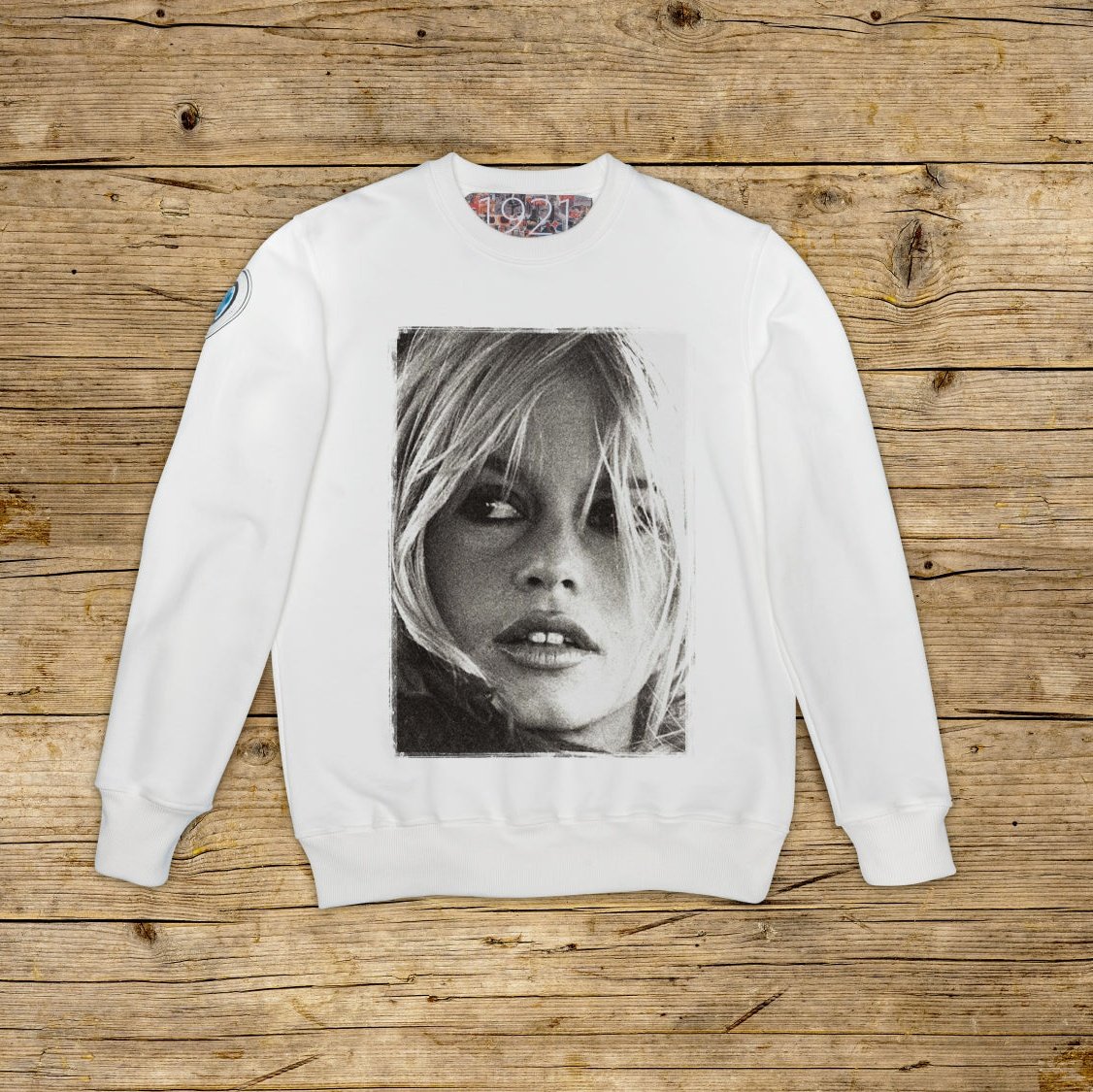 Felpa girocollo dalla vestibilità regolare realizzata in cotone strutturato dalla grammatura importante, nella particolare colorazione OFF WHITE con stampa di alta qualità. Il capo è impreziosito da una PATCH in materiale microiniezione sulla spalla destra riportante l' iconico logo 1921 con ologramma. Il modello è completato da collo, polsini e vita a coste. Un' etichetta di grandi dimensioni in jacquard è applicata all'interno del collo. Rigorosamente made in Italy