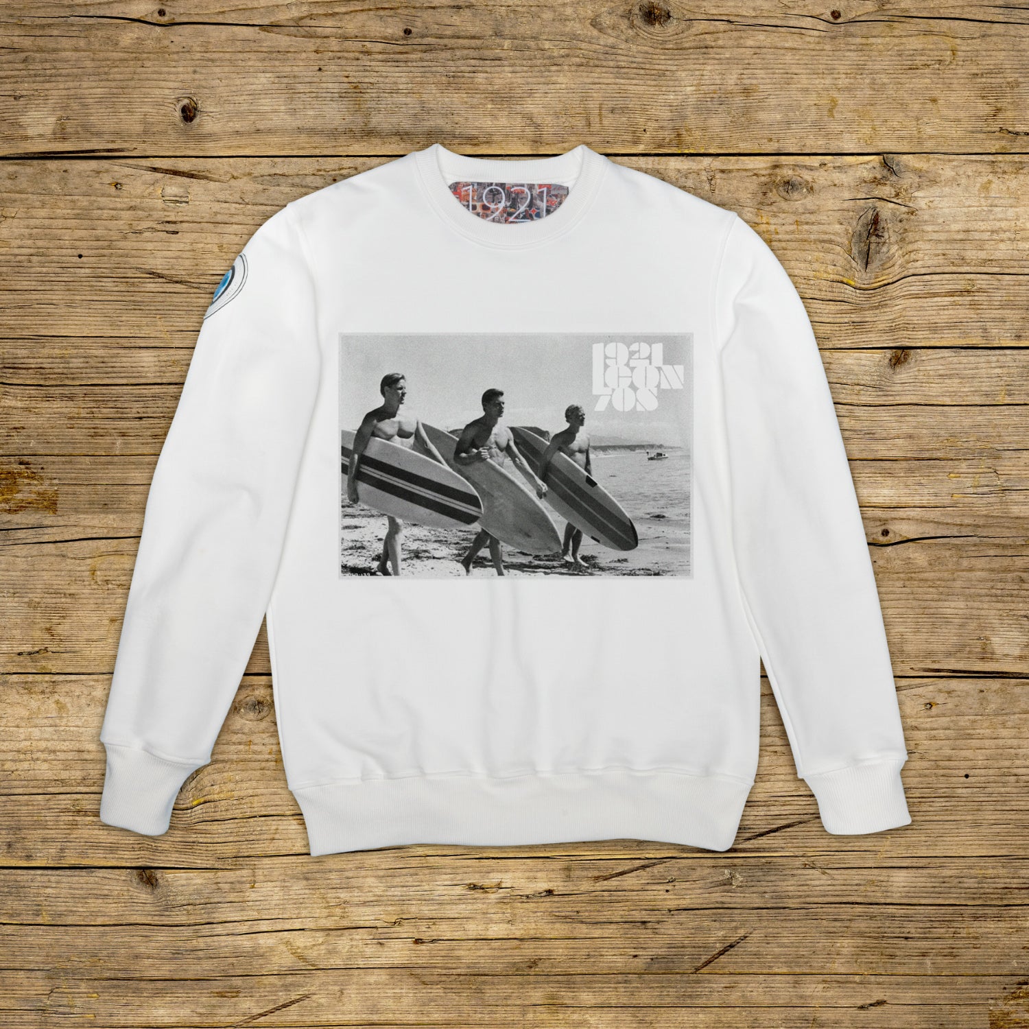 Felpa girocollo dalla vestibilità regolare realizzata in cotone strutturato dalla grammatura importante, nella particolare colorazione OFF WHITE con stampa di alta qualità. Il capo è impreziosito da una PATCH in materiale microiniezione sulla spalla destra riportante l' iconico logo 1921 con ologramma. Il modello è completato da collo, polsini e vita a coste. Un' etichetta di grandi dimensioni in jacquard è applicata all'interno del collo. Rigorosamente made in Italy.