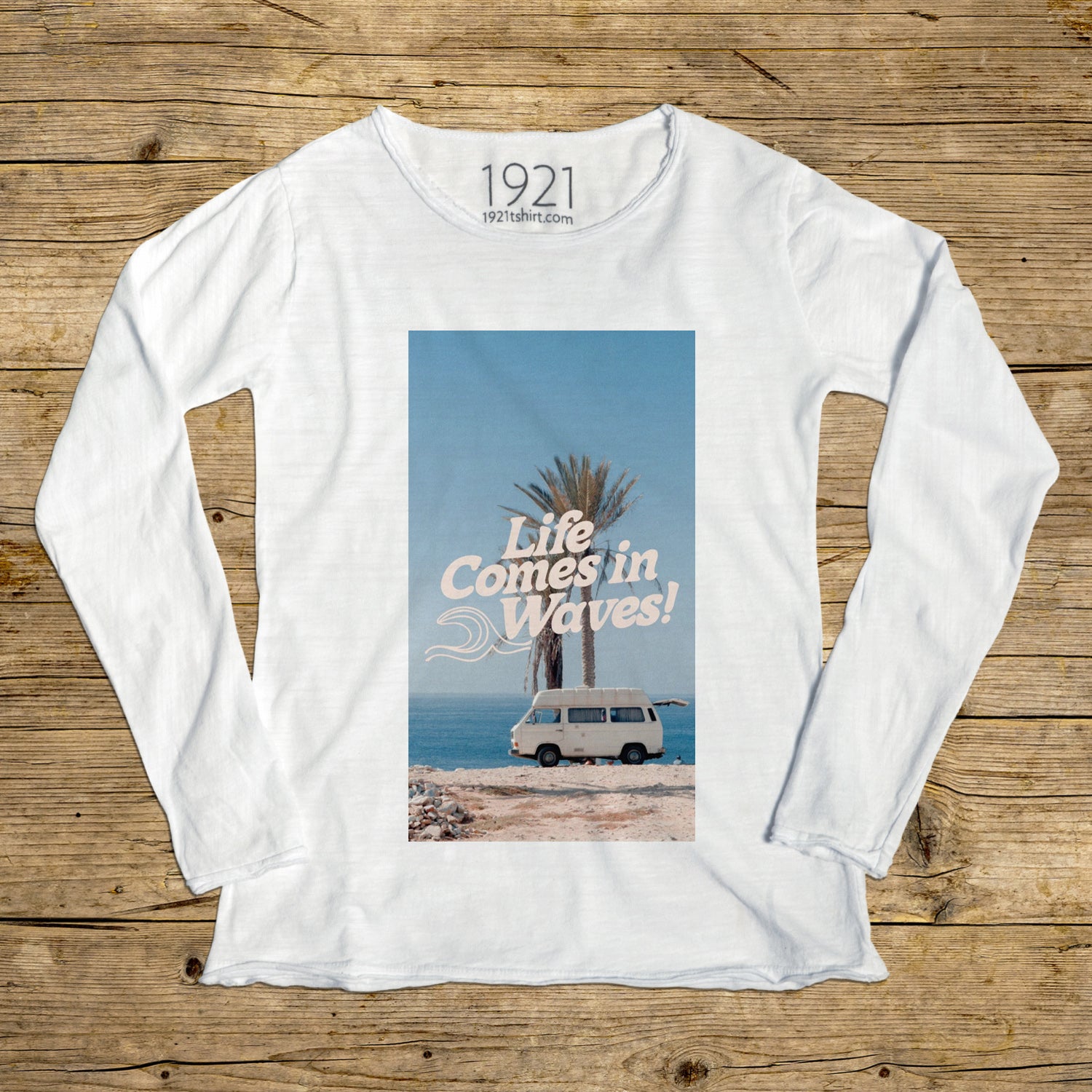 T-shirt manica lunga dalla vestibilità regolare realizzata in cotone fiammato di qualità superiore. Sorprendentemente fresca, dal taglio del collo comodo è impreziosita da una splendida stampa. La T-shirt è resa esclusiva da cuciture particolari del collo, delle maniche e della vita. Rigorosamente made in Italy.