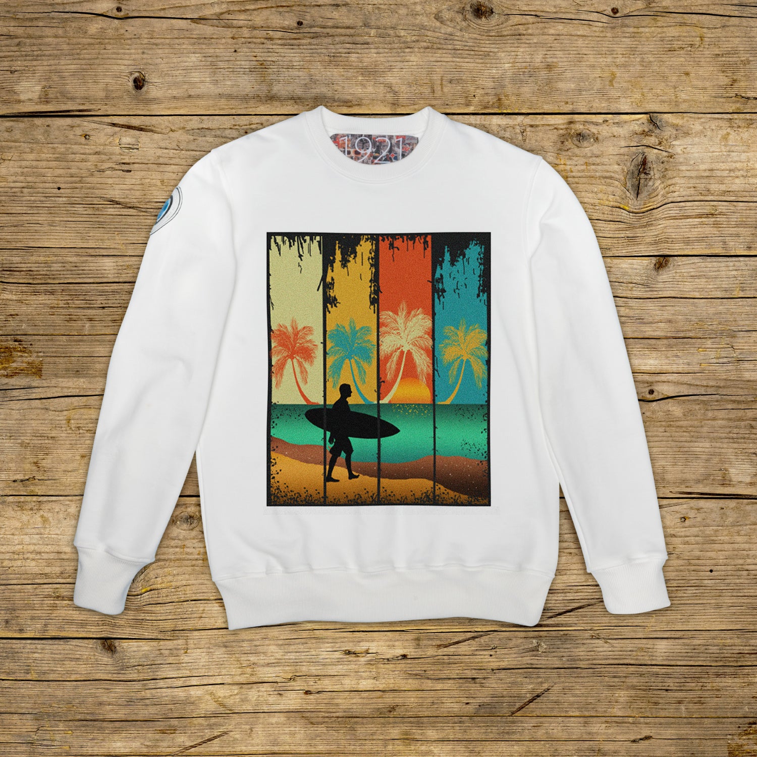 Felpa girocollo dalla vestibilità regolare realizzata in cotone strutturato dalla grammatura importante, nella particolare colorazione OFF WHITE con stampa di alta qualità. Il capo è impreziosito da una PATCH in materiale microiniezione sulla spalla destra riportante l' iconico logo 1921 con ologramma. Il modello è completato da collo, polsini e vita a coste. Un' etichetta di grandi dimensioni in jacquard è applicata all'interno del collo. Rigorosamente made in Italy.