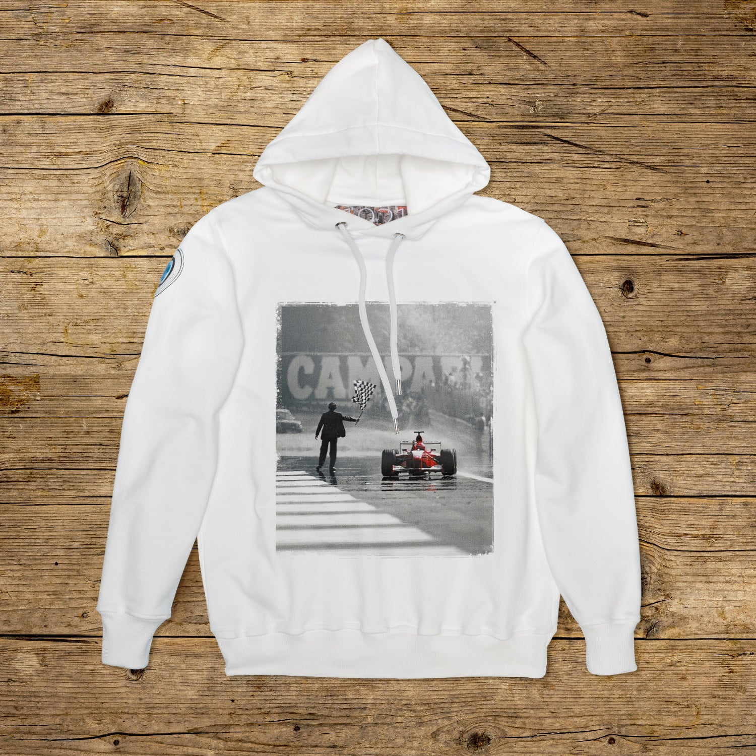 Felpa con cappuccio doppiato dalla vestibilità regolare realizzata in cotone strutturato dalla grammatura importante, nella particolare colorazione OFF WHITE con stampa di alta qualità. Il capo è impreziosito da una PATCH in materiale microiniezione sulla spalla destra riportante l' iconico logo 1921 con ologramma. Il modello è completato da collo, polsini e vita a coste. Un' etichetta di grandi dimensioni in jacquard è applicata all'interno del collo. Gli occhielli dei tiranti del cappuccio sono in acciaio spessorato così come il finale del cordoncino personalizzato 1921. Rigorosamente made in Italy.