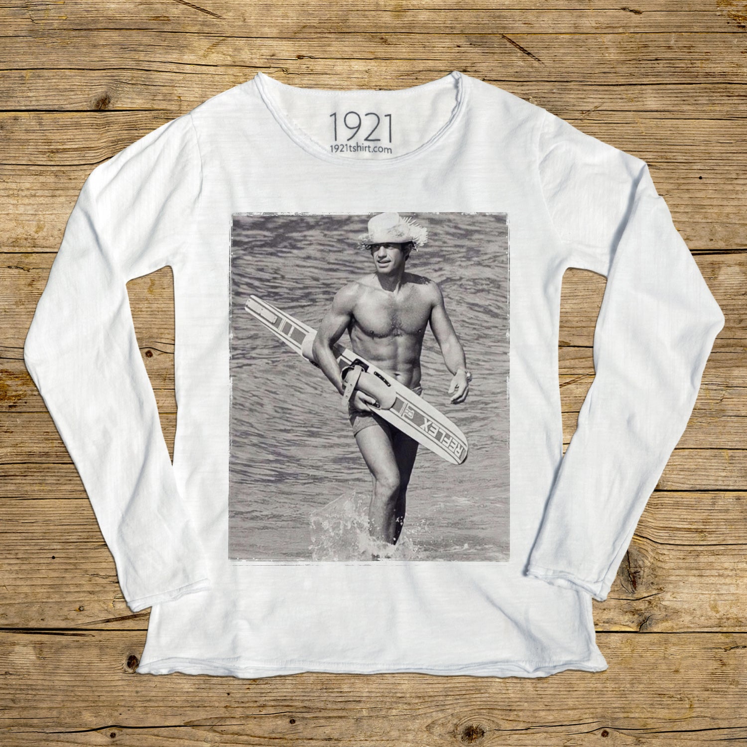 T-shirt manica lunga dalla vestibilità regolare realizzata in cotone fiammato di qualità superiore. Sorprendentemente fresca, dal taglio del collo comodo è impreziosita da una splendida stampa. La T-shirt è resa esclusiva da cuciture particolari del collo, delle maniche e della vita. Rigorosamente made in Italy.