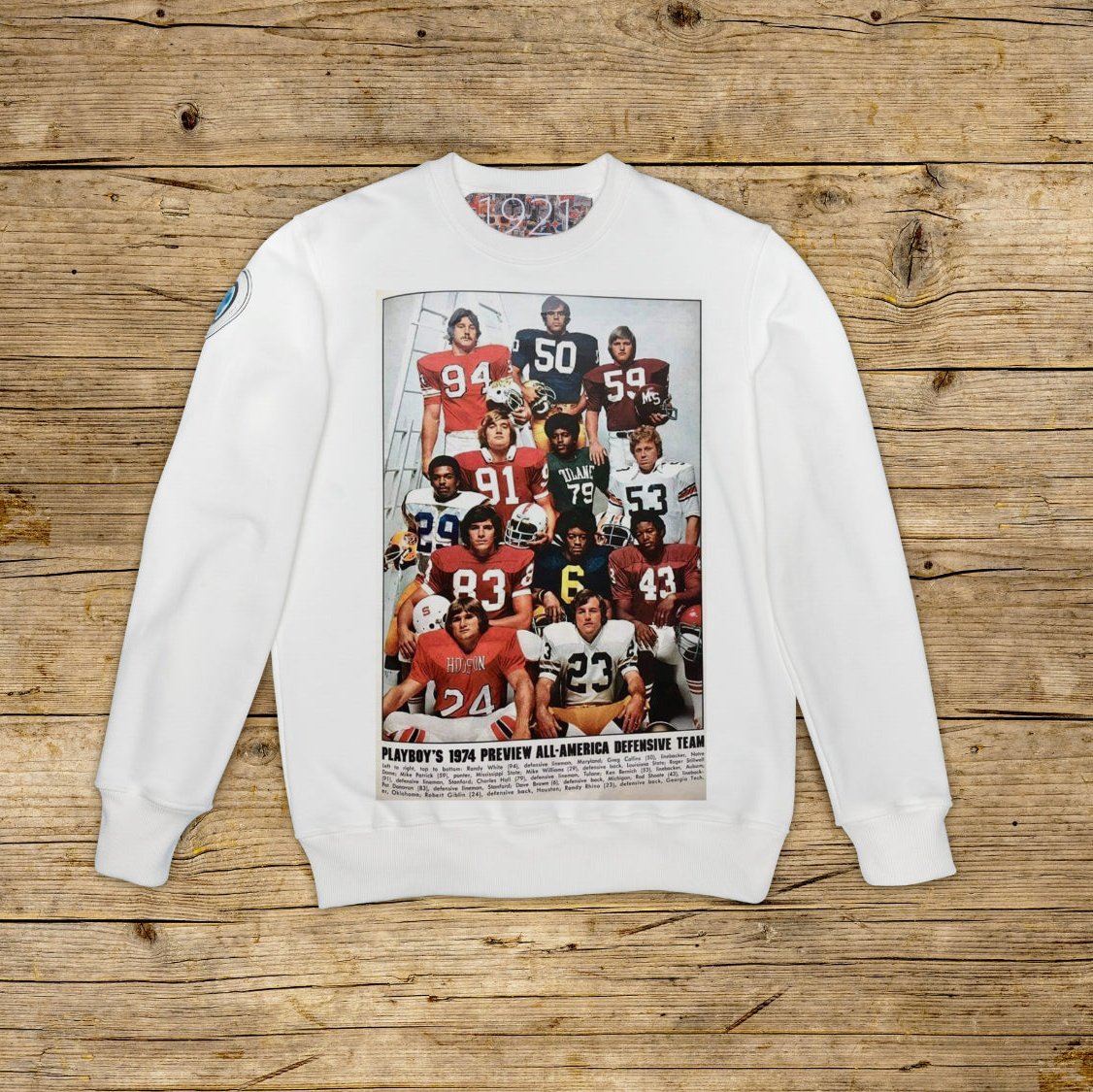 Felpa girocollo dalla vestibilità regolare realizzata in cotone strutturato dalla grammatura importante, nella particolare colorazione OFF WHITE con stampa di alta qualità. Il capo è impreziosito da una PATCH in materiale microiniezione sulla spalla destra riportante l' iconico logo 1921 con ologramma. Il modello è completato da collo, polsini e vita a coste. Un' etichetta di grandi dimensioni in jacquard è applicata all'interno del collo. Rigorosamente made in Italy.