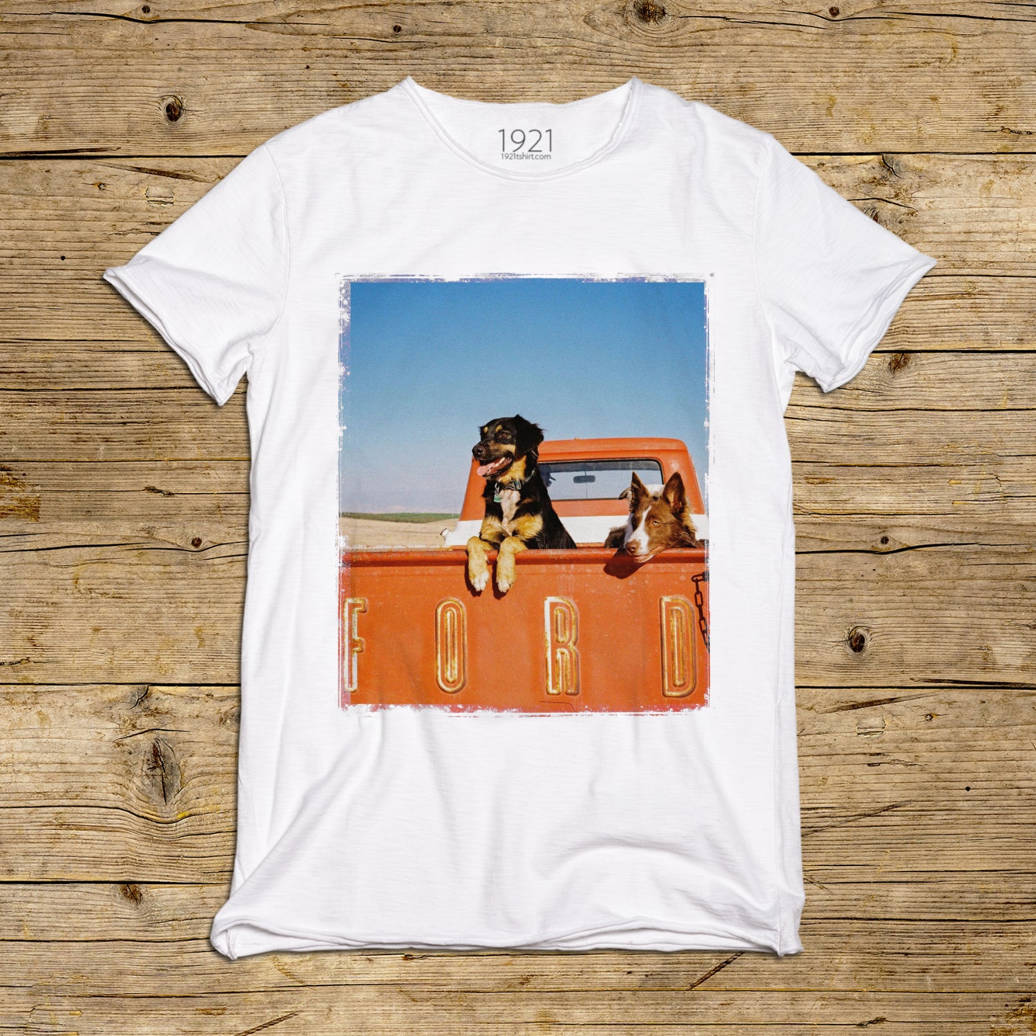 Un frammento di autentica vita rurale che celebra il sogno americano più genuino e spensierato. Questa stampa cattura l'essenza della libertà on-the-road: due fedeli compagni a quattro zampe a bordo di un leggendario pick-up Ford d'epoca, simbolo di resistenza e heritage motoristico. Uno scatto che fonde il calore dei colori della terra con il blu terso del cielo, evocando le atmosfere dei grandi spazi aperti e la bellezza delle cose semplici. Pensata per chi cerca uno stile narrativo e vibrante, capace di raccontare una storia di amicizia, fedeltà e spirito d'avventura senza tempo.
