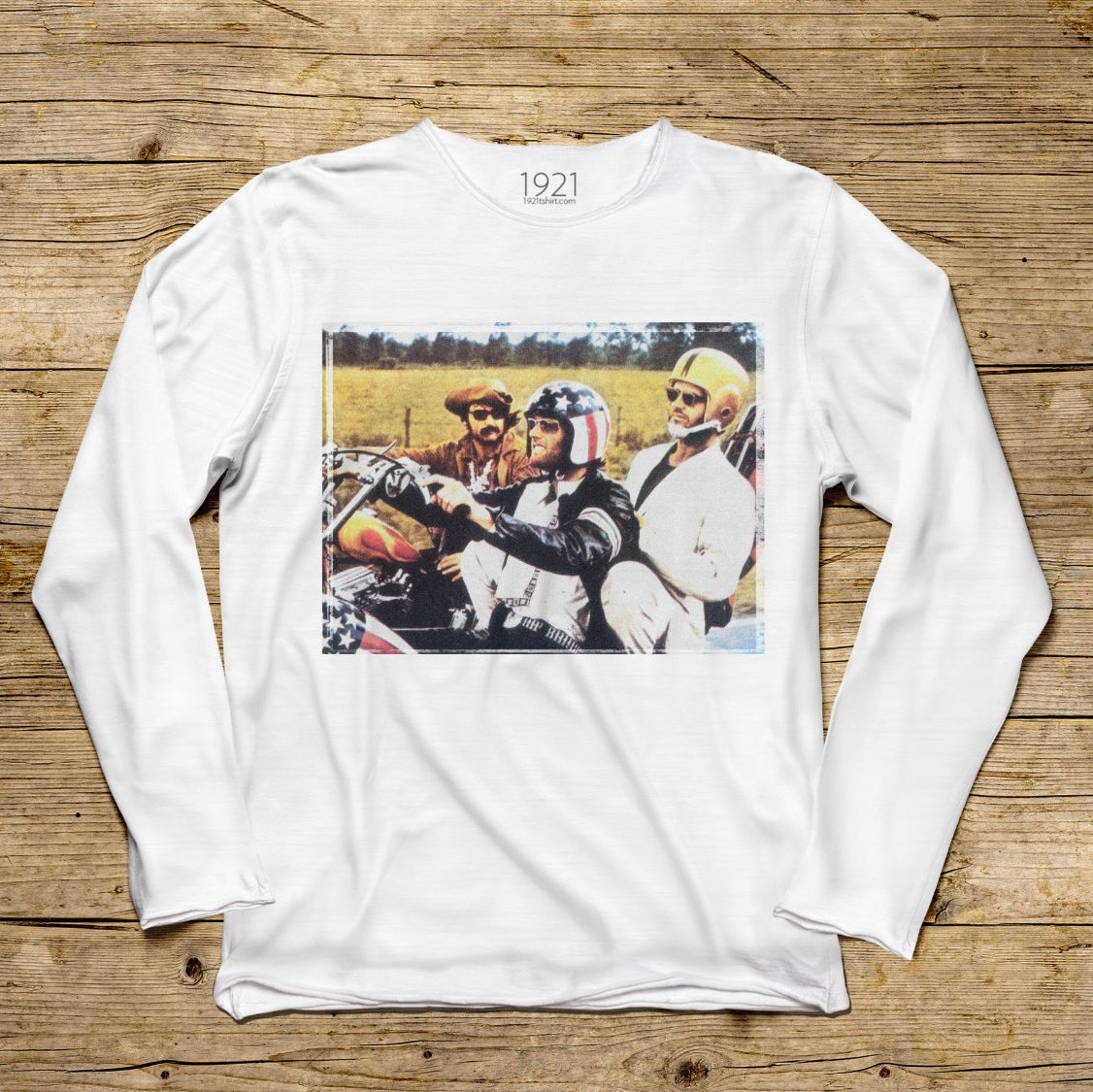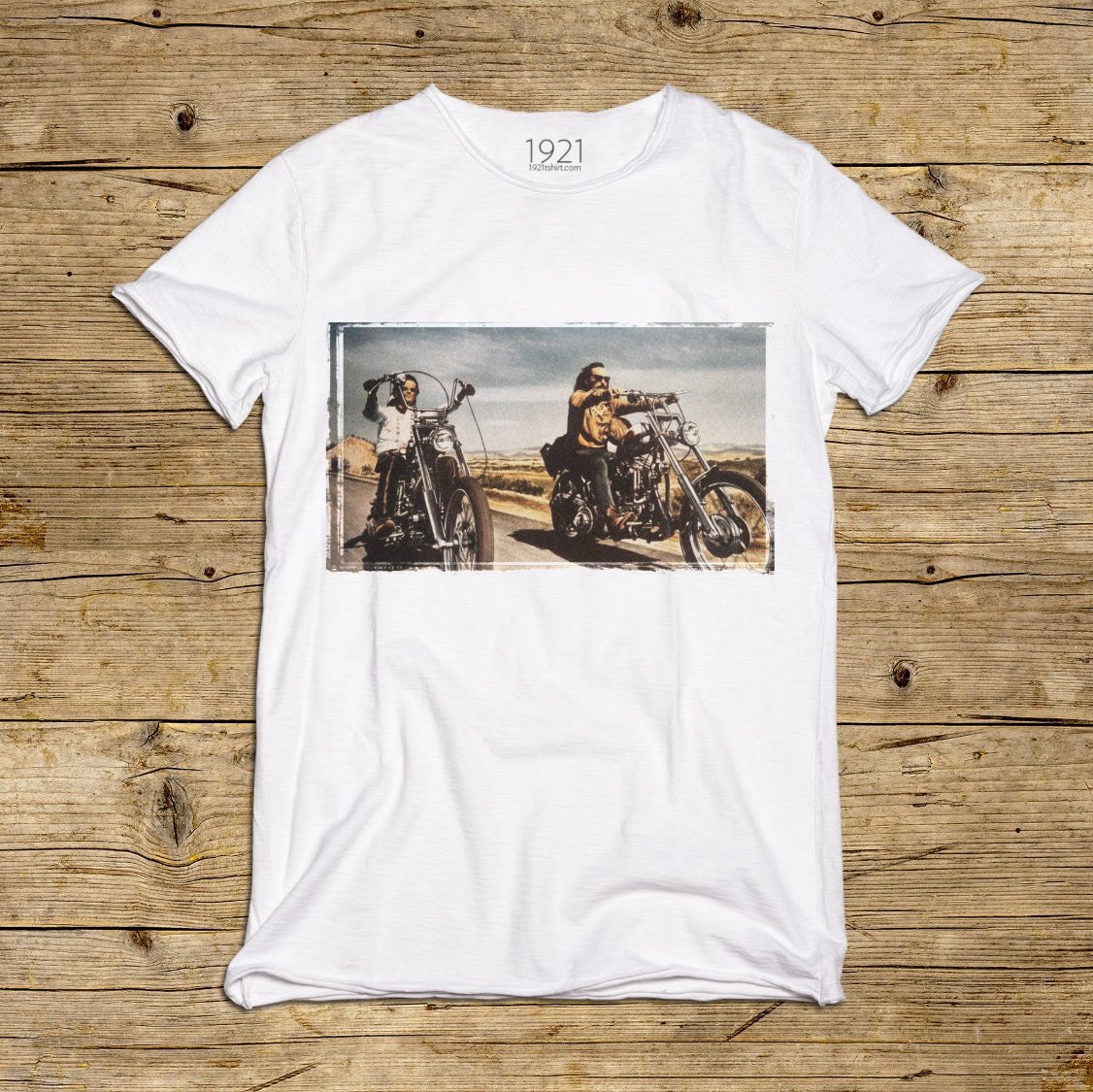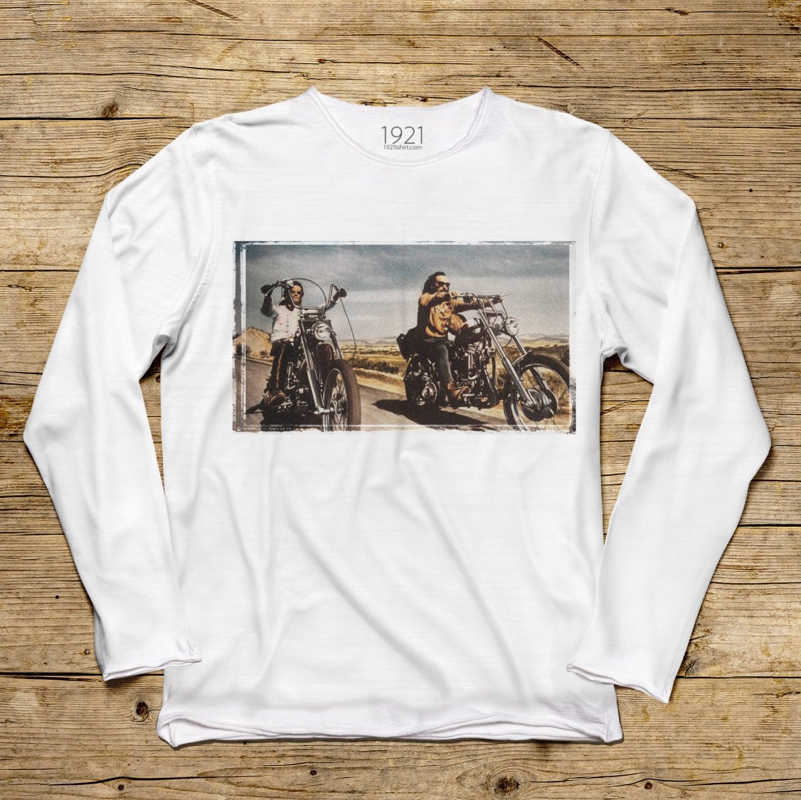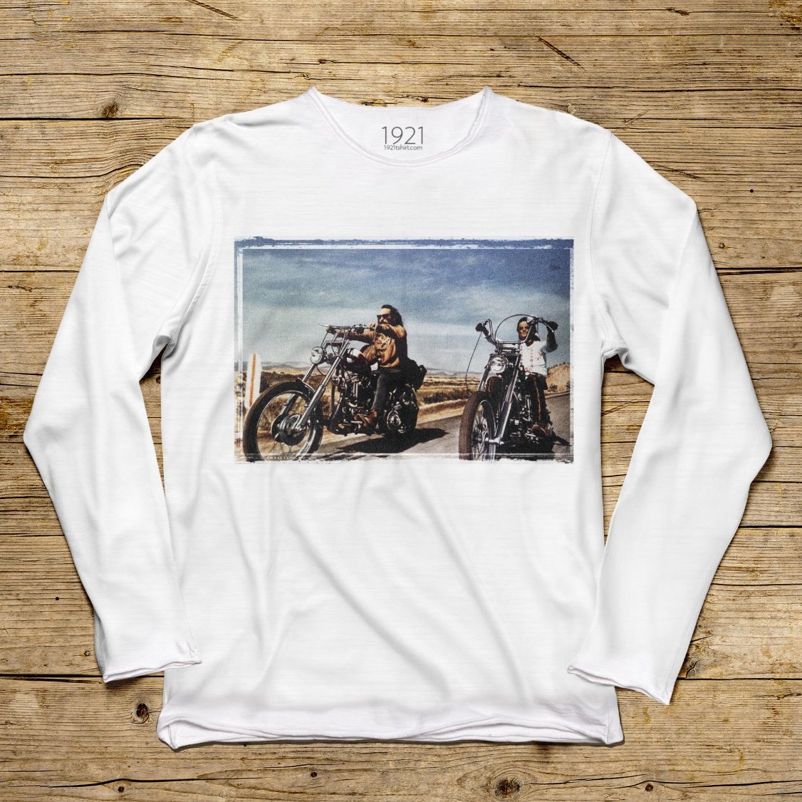1921 feiert den zeitlosen Mythos von Easy Rider, einem filmischen Meisterwerk aus dem Jahr 1969 unter der Regie von Dennis Hopper in der Rolle des Billy, neben dem unvergesslichen Peter Fonda, besser bekannt als Wyatt, mit dem Spitznamen „Captain America“, und dem legendären Jack Nicholson, der erweckte den Charakter von George Hanson zum Leben. Dieser Film ist nicht nur eine Ikone des Kinos, sondern auch ein Symbol für Freiheit, Rebellion und die Suche nach Authentizität. Durch die Abenteuer seiner Protagonisten auf ihren Motorrädern hat Easy Rider die Essenz dieser Ära eingefangen und einer Generation eine Stimme gegeben, die gesellschaftliche Konventionen in Frage stellte und den Geist der Gegenkultur annahm. Die Kollektion 1921 ist von diesem Kinoepos inspiriert und vermittelt die rebellische Energie und die abenteuerlustige Seele seiner Charaktere.
