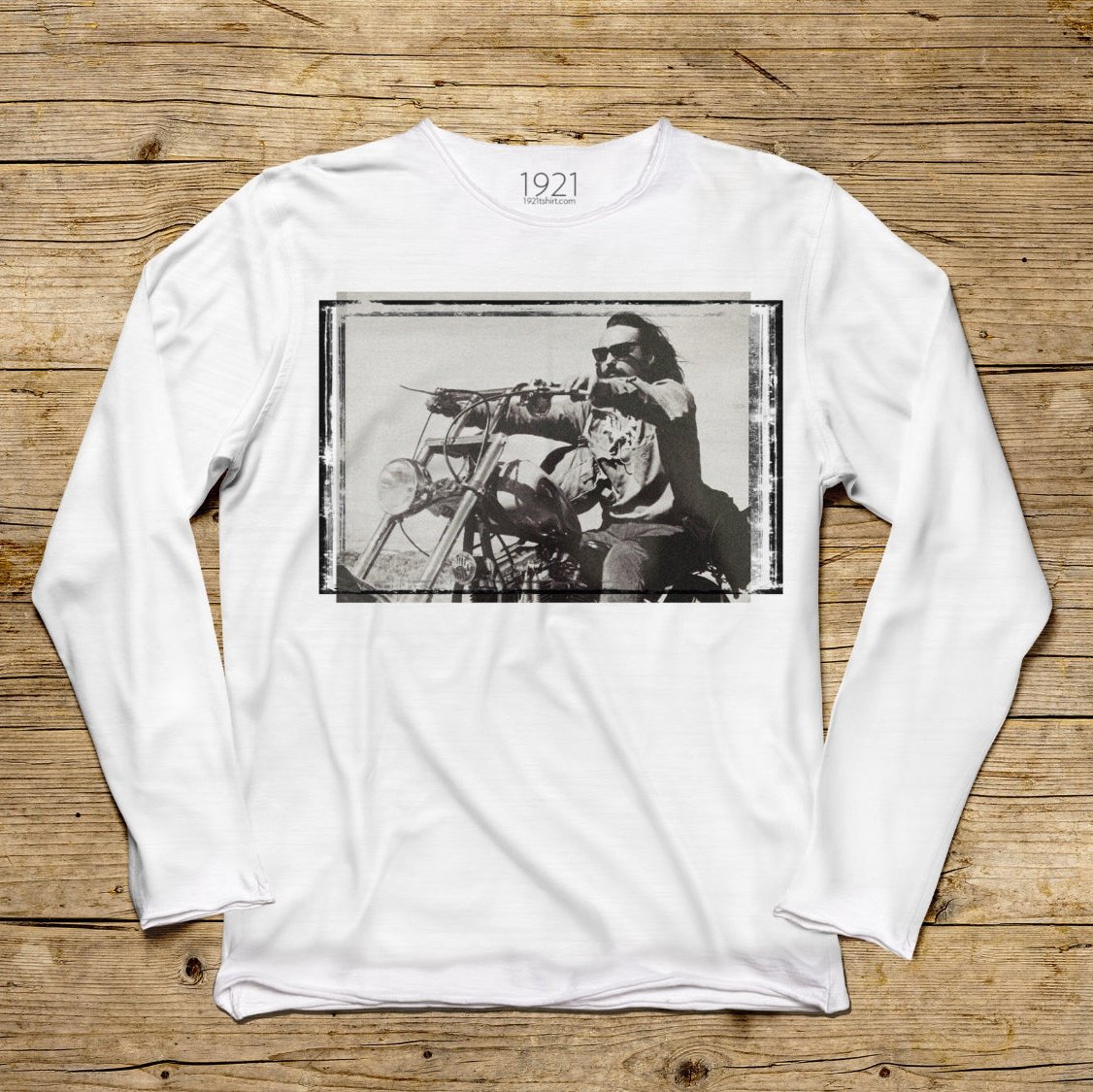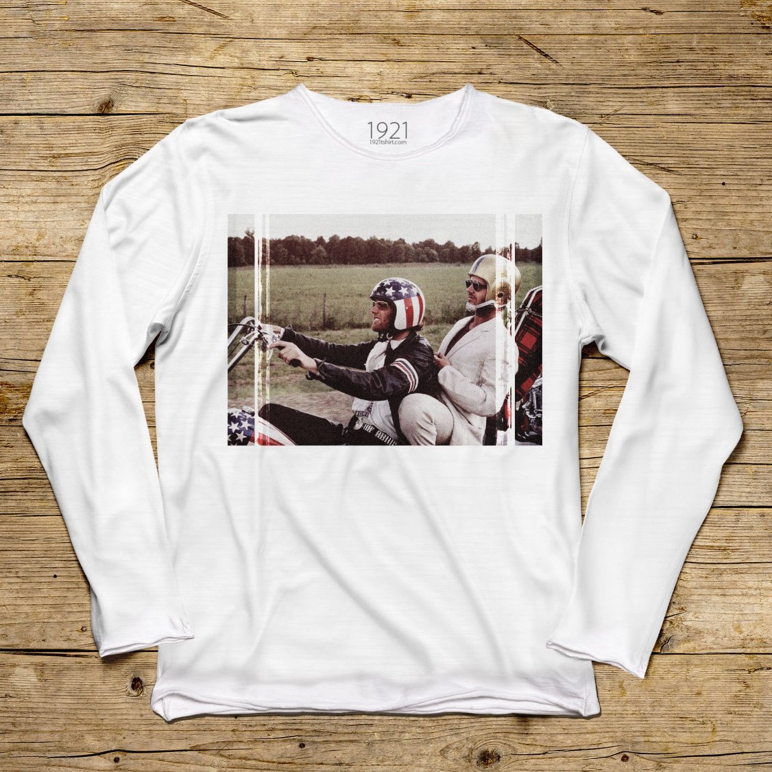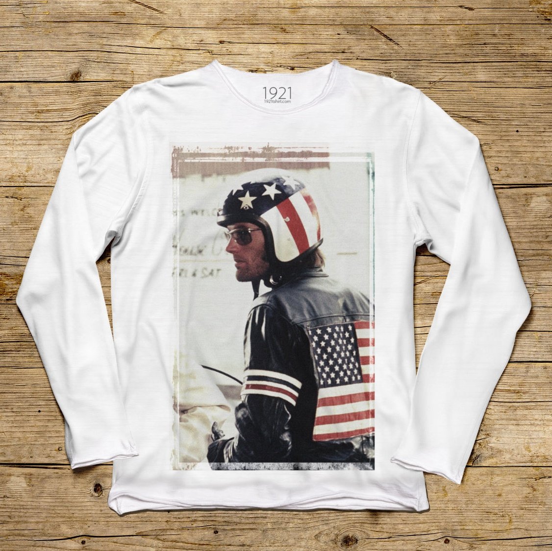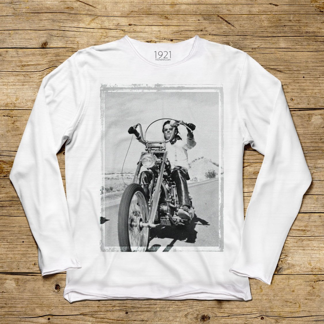 1921 feiert den zeitlosen Mythos von Easy Rider, einem filmischen Meisterwerk aus dem Jahr 1969 unter der Regie von Dennis Hopper in der Rolle des Billy, neben dem unvergesslichen Peter Fonda, besser bekannt als Wyatt, mit dem Spitznamen „Captain America“, und dem legendären Jack Nicholson, der erweckte den Charakter von George Hanson zum Leben. Dieser Film ist nicht nur eine Ikone des Kinos, sondern auch ein Symbol für Freiheit, Rebellion und die Suche nach Authentizität. Durch die Abenteuer seiner Protagonisten auf ihren Motorrädern hat Easy Rider die Essenz dieser Ära eingefangen und einer Generation eine Stimme gegeben, die gesellschaftliche Konventionen in Frage stellte und den Geist der Gegenkultur annahm. Die Kollektion 1921 ist von diesem Kinoepos inspiriert und vermittelt die rebellische Energie und die abenteuerlustige Seele seiner Charaktere.