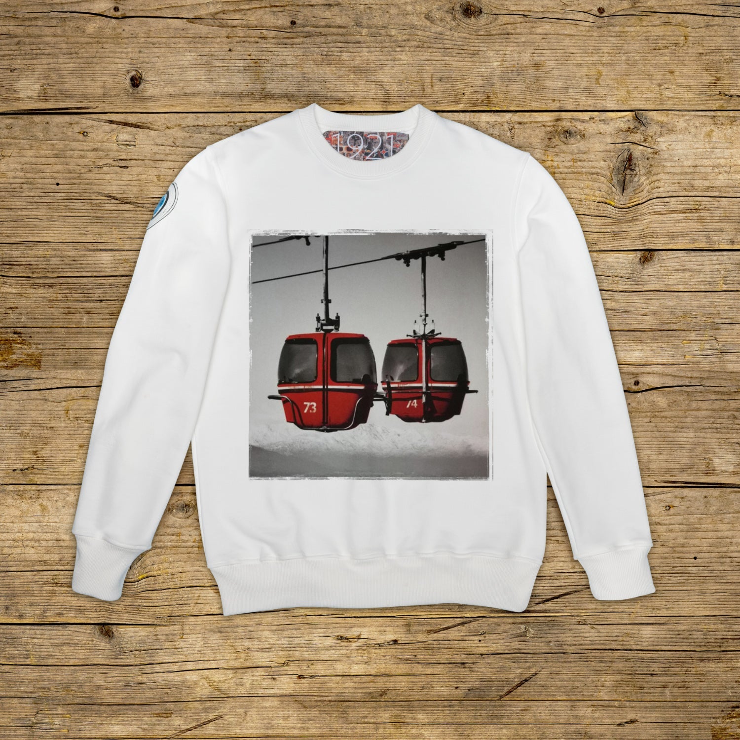 Sweatshirt mit Rundhalsausschnitt in normaler Passform aus strukturierter Baumwolle mit schwerem Gewicht, in der besonderen Farbe OFF WHITE mit hochwertigem Aufdruck. Das Kleidungsstück ist mit einem PATCH aus Mikroinjektionsmaterial auf der rechten Schulter verziert, das das ikonische 1921-Logo mit Hologramm trägt. Abgerundet wird das Modell durch einen gerippten Kragen, Bündchen und Taille. Auf der Innenseite des Halses ist ein großes Jacquard-Etikett angebracht. Ausschließlich in Italien hergestellt.