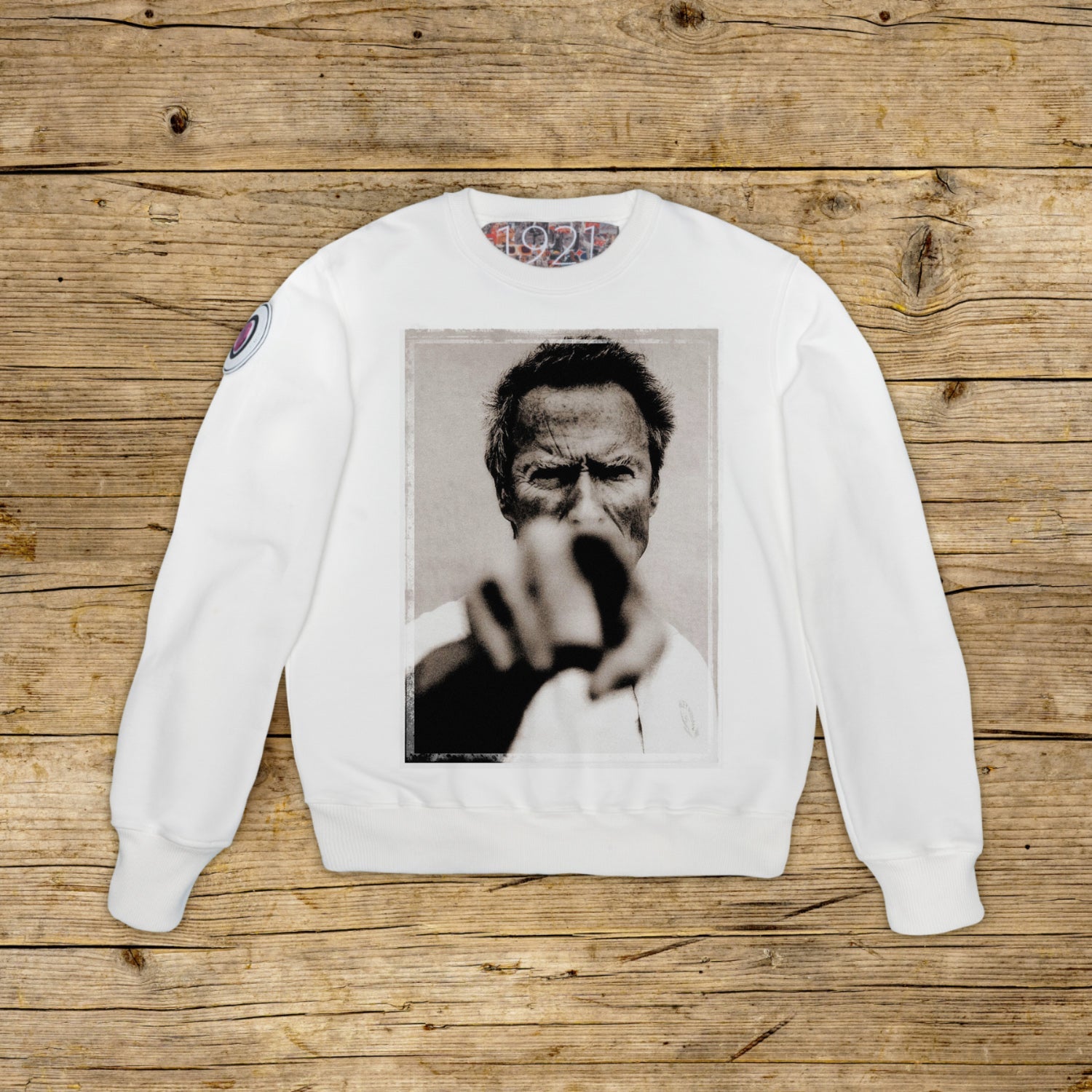 Regular fit crew-neck sweatshirt made of structured cotton with a heavy weight, in the particular OFF WHITE color with high quality print. The garment is embellished with a PATCH in micro-injection material on the right shoulder bearing the iconic 1921 logo with hologram. The model is completed by a ribbed collar, cuffs and waist. A large jacquard label is applied to the inside of the neck. Strictly made in Italy.
