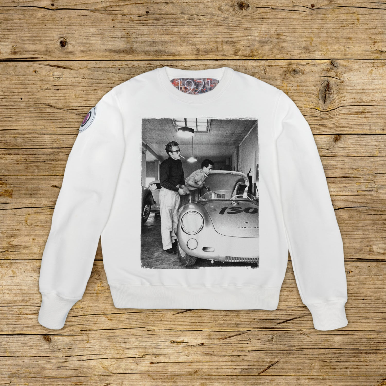 Regular fit crew-neck sweatshirt made of structured cotton with a heavy weight, in the particular OFF WHITE color with high quality print. The garment is embellished with a PATCH in micro-injection material on the right shoulder bearing the iconic 1921 logo with hologram. The model is completed by a ribbed collar, cuffs and waist. A large jacquard label is applied to the inside of the neck. Strictly made in Italy.