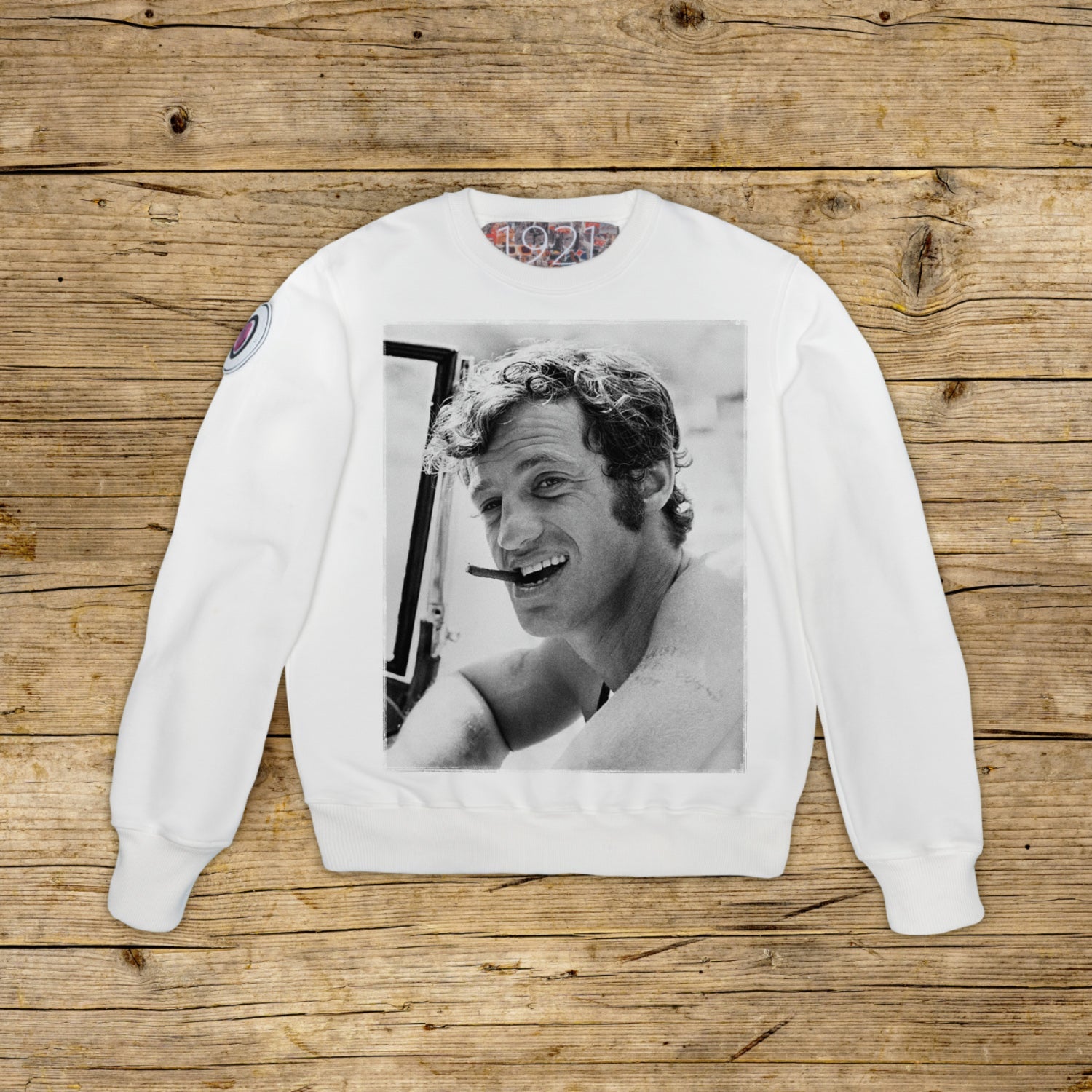 Regular fit crew-neck sweatshirt made of structured cotton with a heavy weight, in the particular OFF WHITE color with high quality print. The garment is embellished with a PATCH in micro-injection material on the right shoulder bearing the iconic 1921 logo with hologram. The model is completed by a ribbed collar, cuffs and waist. A large jacquard label is applied to the inside of the neck. Strictly made in Italy.