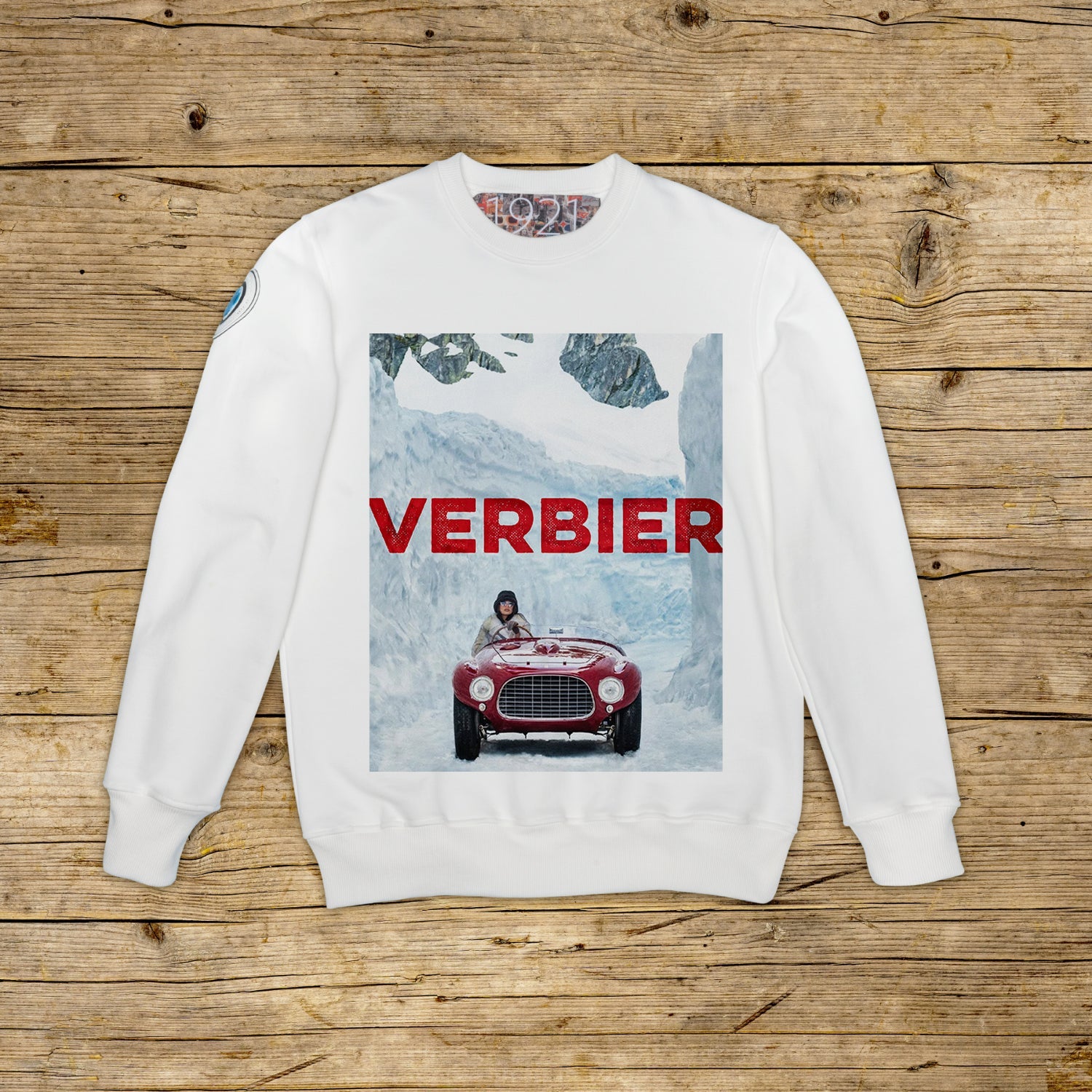 Crew-neck sweatshirt with a regular fit, crafted from structured cotton with substantial weight, in the distinctive OFF WHITE color with high-quality print. The piece features a PATCH in micro-injection material on the right shoulder bearing the iconic 1921 logo with hologram. Finished with ribbed collar, cuffs and hem. A large jacquard label is applied inside the collar. Made in Italy.