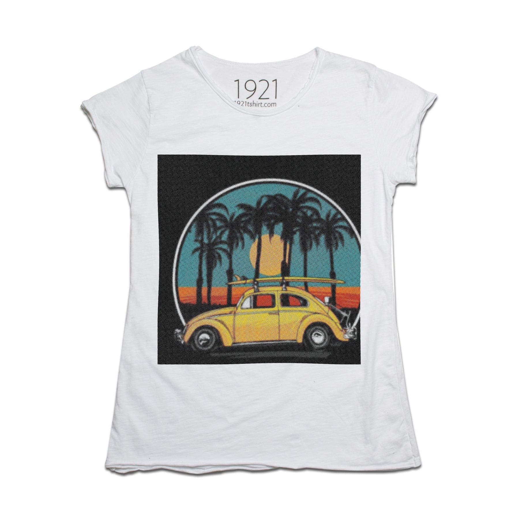 Regular fit T-shirt made from superior quality slub cotton. Surprisingly fresh, with a comfortable neck cut and embellished with a splendid print. The T-shirt is made exclusive by special stitching on the neck, sleeves and waist.