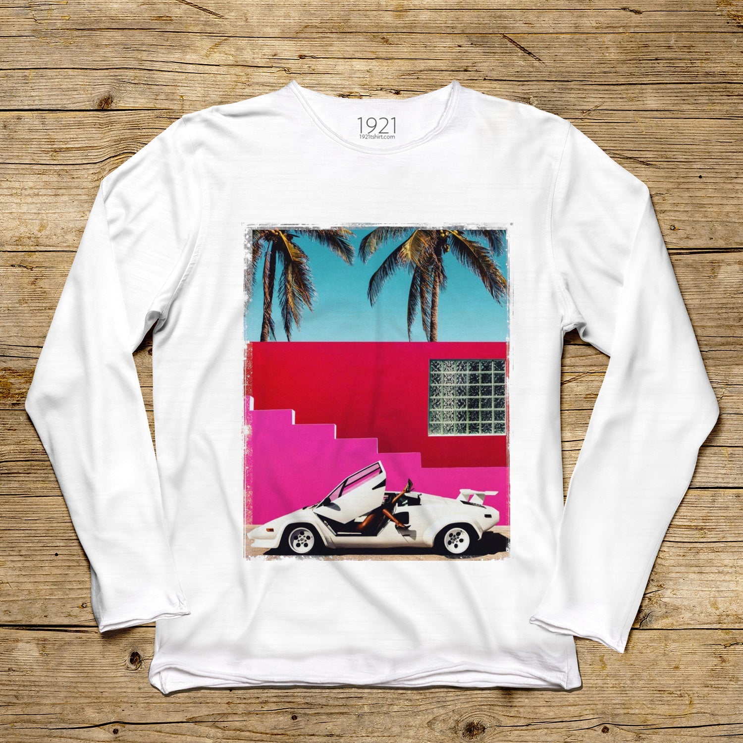 Una incursión en lavibrante estética de los años 80, donde el diseño futurista del Lamborghini Countach se fusiona con una narrativa visual saturada y atrevida. Este estampado captura la esencia del lujo de la Costa Oeste, proyectando el icono automovilístico definitivo en una atmósfera synthwave de arquitectura pop y palmeras icónicas. Un homenaje a la pureza aerodinámica y al sueño de un verano sin fin, diseñado para quienes buscan una elegancia nostálgica que evoque el atractivo atemporal de los supercoches vintage.
