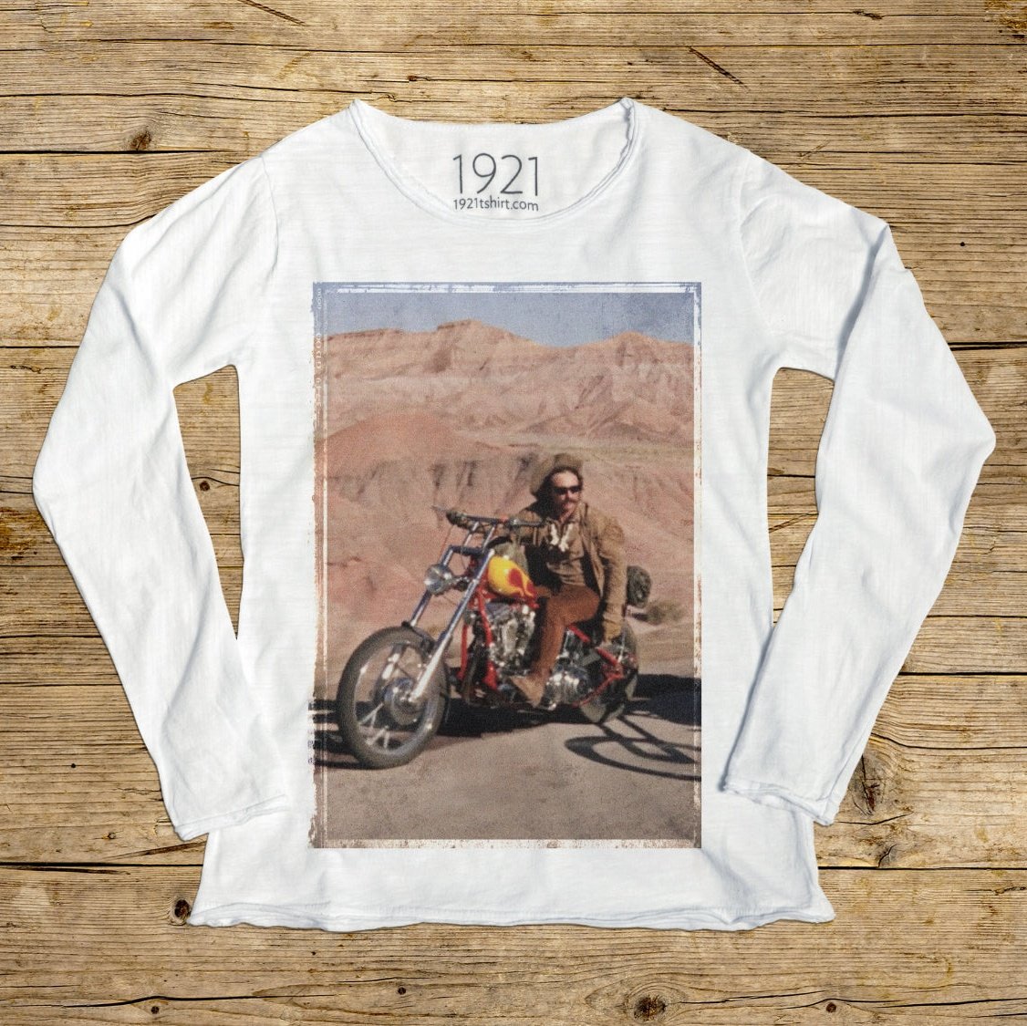 1921 célèbre le mythe intemporel d'Easy Rider, chef-d'œuvre cinématographique de 1969 réalisé par et mettant en vedette Dennis Hopper dans le rôle de Billy, aux côtés de l'inoubliable Peter Fonda, plus connu sous le nom de Wyatt, surnommé « Captain America » et du légendaire Jack Nicholson, qui a donné vie au personnage de George Hanson. Ce film n'est pas seulement une icône du cinéma, mais aussi un symbole de liberté, de rébellion et de recherche d'authenticité. À travers les aventures de ses protagonistes à cheval sur leurs motos, Easy Rider a capturé l'essence de l'époque, donnant la parole à une génération qui a défié les conventions sociales et embrassé l'esprit de contre-culture. La collection 1921 s'inspire de cette épopée cinématographique, véhiculant l'énergie rebelle et l'âme aventureuse de ses personnages.