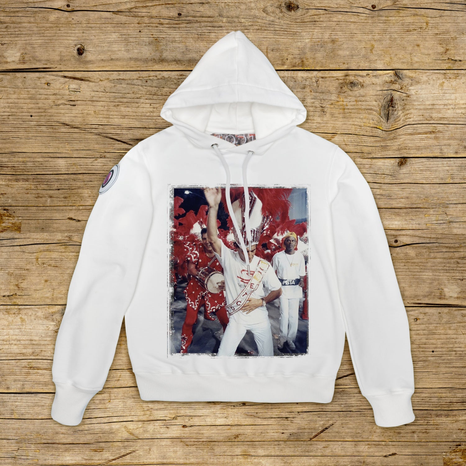Sweat à capuche doublée, coupe régulière, réalisé en coton structuré de grammage important, dans la teinte OFF WHITE avec impression de haute qualité. Le vêtement est rehaussé d’un PATCH en micro‑injection sur l’épaule droite portant le logo 1921 iconique avec hologramme. Finition bord‑côte au col, aux poignets et au bas. Une grande étiquette en jacquard est appliquée à l’intérieur du col. Les œillets du cordon de la capuche sont en acier épais, tout comme l’embout du cordon personnalisé 1921. Rigorosamente made in Italy.