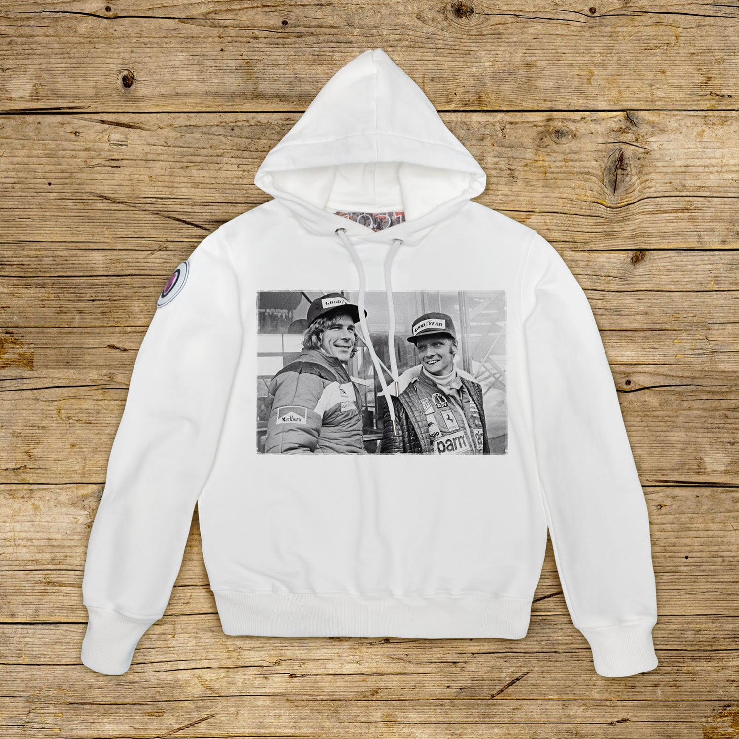 Sweat à capuche double coupe régulière en coton structuré de poids lourd, de la couleur particulière OFF WHITE avec impression de haute qualité. Le vêtement est agrémenté d'un PATCH en matière micro-injectée sur l'épaule droite portant l'iconique logo 1921 avec hologramme. Le modèle est complété par un col, des poignets et une taille côtelés. Une grande étiquette jacquard est appliquée à l'intérieur du col. Les œillets des tirants du capot sont en acier épaissi ainsi que l'extrémité du cordon personnalisé 1921. Strictement fabriqué en Italie