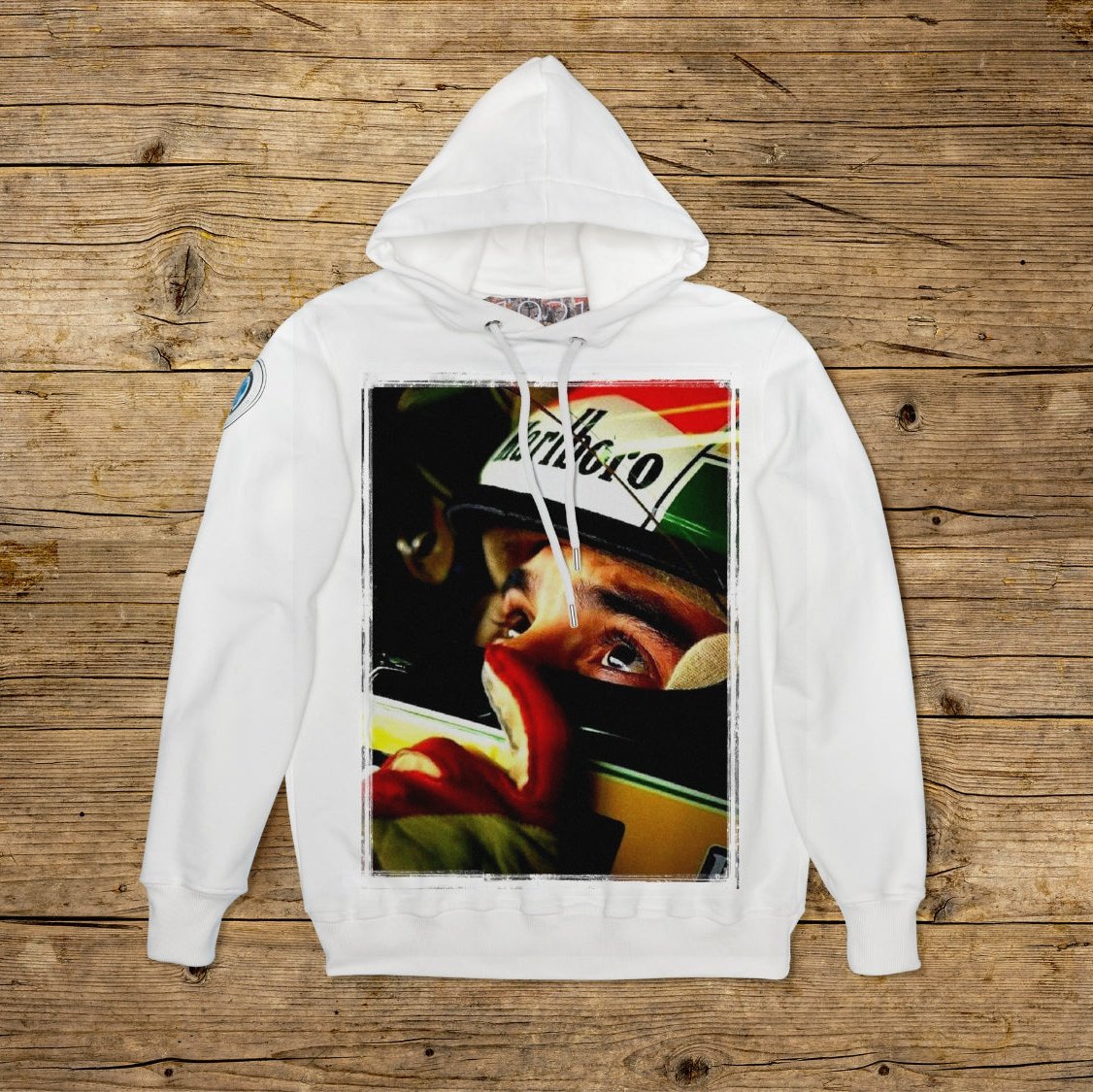 Dvostruka majica s kapuljačom i regularnim krojem izrađena od strukturiranog pamuka s velikom težinom, u posebnoj OFF WHITE boji s visokokvalitetnim printom. Odjevni predmet ukrašen je ZAKRPOM od materijala za mikroinjektiranje na desnom ramenu koji nosi legendarni logo 1921. s hologramom. Model je upotpunjen rebrastim ovratnikom, manžetama i strukom. Velika jacquard etiketa aplicirana je s unutarnje strane vrata. Ušice za zatezanje poklopca motora izrađene su od zadebljanog čelika kao i kraj personaliziranog užeta iz 1921. godine.