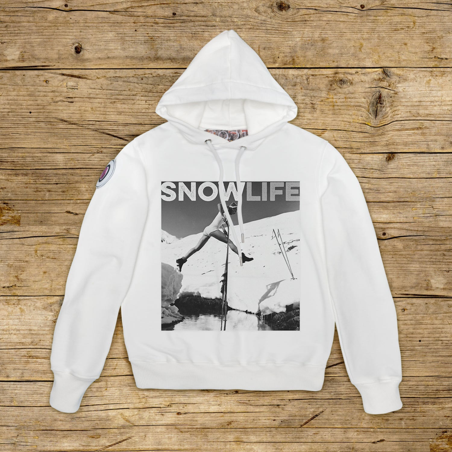 Kétrétegű kapucnis, normál fazonú pulóver, strukturált, nagy grammsúlyú pamutból, jellegzetes OFF WHITE színben, magas minőségű nyomattal. A darabot mikroinjekciós anyagú PATCH díszíti a jobb vállon az ikonikus 1921 logóval és hologrammal. Bordás nyak, mandzsetта és derékrész. Nagy jacquard címke a nyak belső részén. A kapucni zsinórjának fémgyűrűi vastag acélból, 1921 személyre szabott zsinórvéggel. Made in Italy.