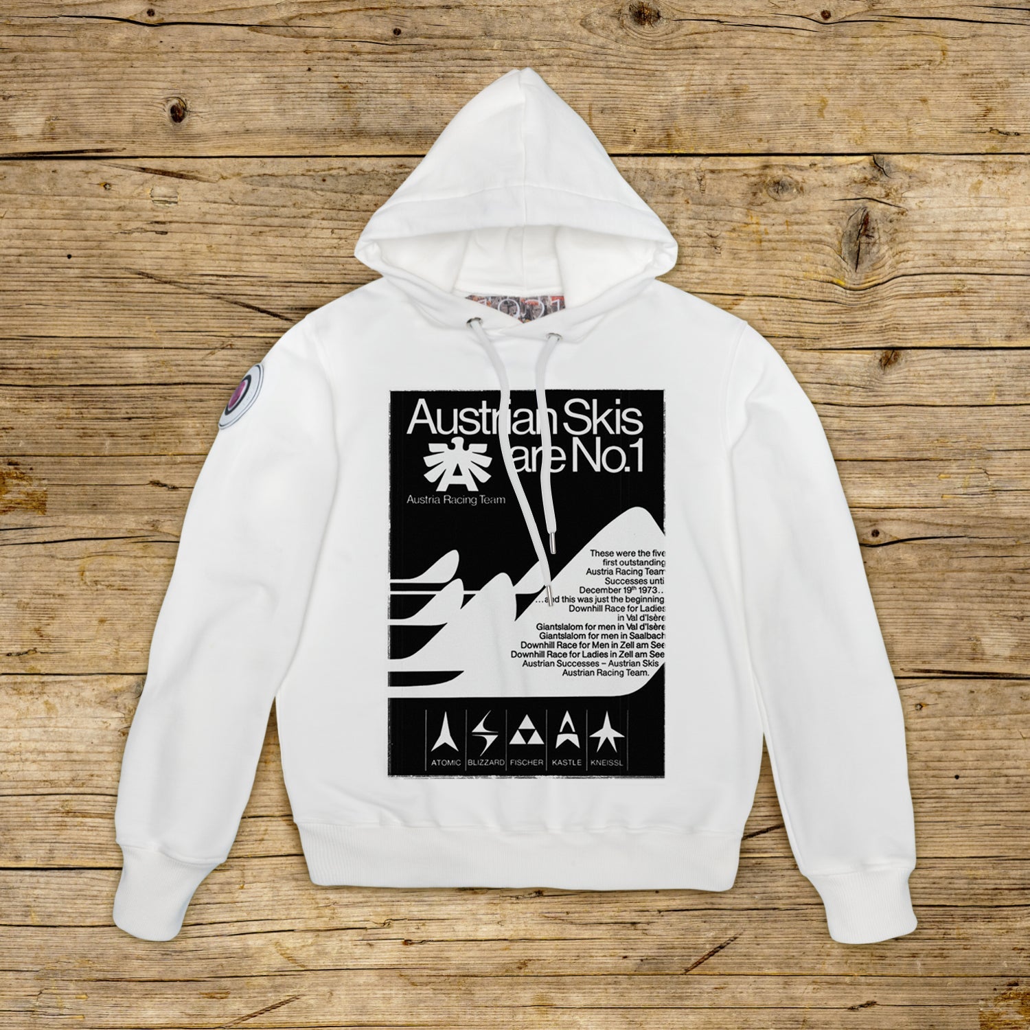 Kétrétegű kapucnis, normál fazonú pulóver, strukturált, nagy grammsúlyú pamutból, jellegzetes OFF WHITE színben, magas minőségű nyomattal. A darabot mikroinjekciós anyagú PATCH díszíti a jobb vállon az ikonikus 1921 logóval és hologrammal. Bordás nyak, mandzsetта és derékrész. Nagy jacquard címke a nyak belső részén. A kapucni zsinórjának fémgyűrűi vastag acélból, 1921 személyre szabott zsinórvéggel. Made in Italy.