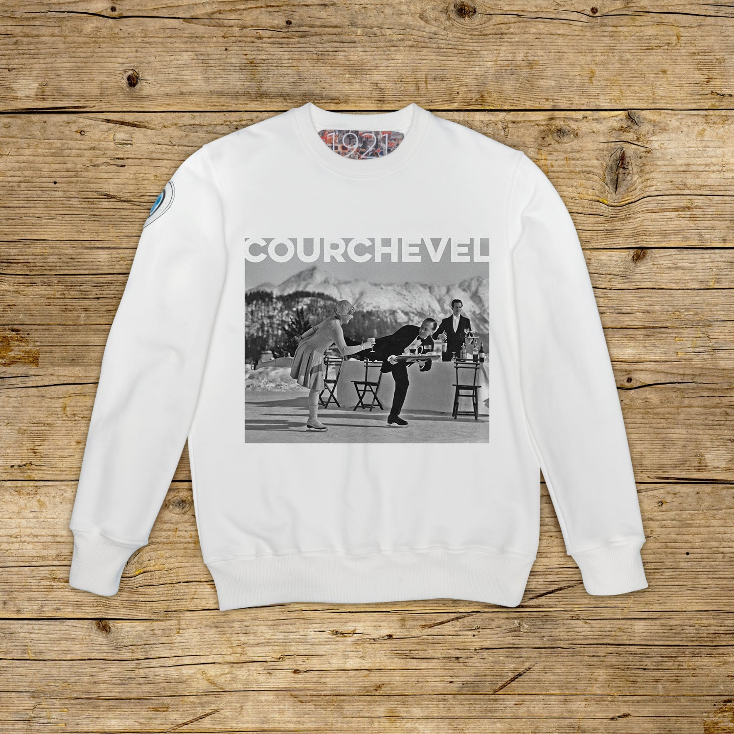 Collegegenser med rund hals og regular passform, i strukturert bomull med høy vekt, i den karakteristiske fargen OFF WHITE med trykk av høy kvalitet. Plagget har en PATCH i mikroinjeksjonsmateriale på høyre skulder med det ikoniske 1921‑logoet med hologram. Ribbestrikket hals, mansjetter og fald. Stor jacquard-etikett på innsiden av halsen. Made in Italy.