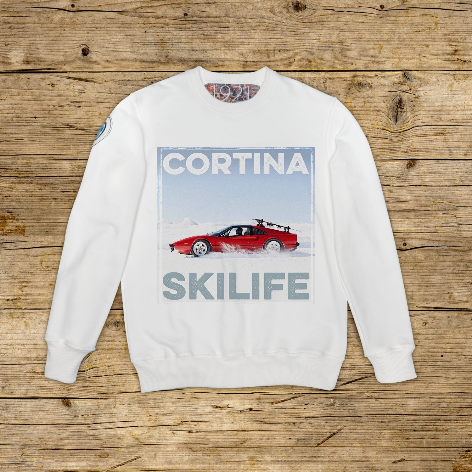Collegegenser med rund hals og regular passform, i strukturert bomull med høy vekt, i den karakteristiske fargen OFF WHITE med trykk av høy kvalitet. Plagget har en PATCH i mikroinjeksjonsmateriale på høyre skulder med det ikoniske 1921‑logoet med hologram. Ribbestrikket hals, mansjetter og fald. Stor jacquard-etikett på innsiden av halsen. Made in Italy.