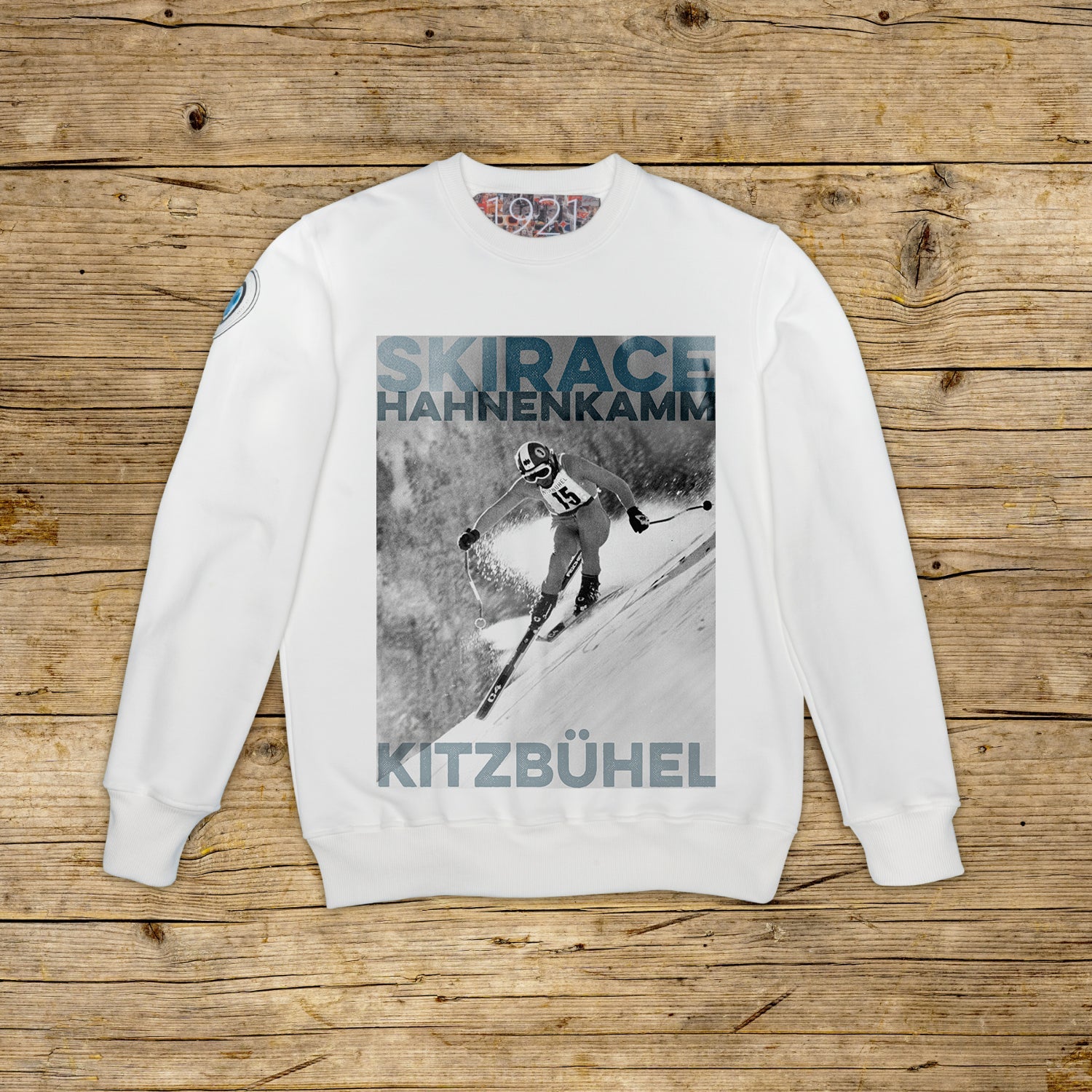 Collegegenser med rund hals og regular passform, i strukturert bomull med høy vekt, i den karakteristiske fargen OFF WHITE med trykk av høy kvalitet. Plagget har en PATCH i mikroinjeksjonsmateriale på høyre skulder med det ikoniske 1921‑logoet med hologram. Ribbestrikket hals, mansjetter og fald. Stor jacquard-etikett på innsiden av halsen. Made in Italy.