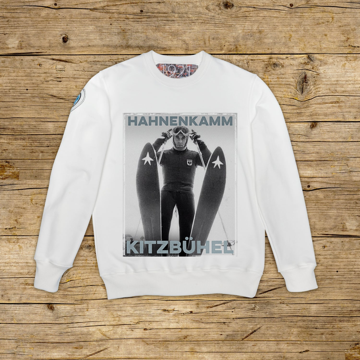 Collegegenser med rund hals og regular passform, i strukturert bomull med høy vekt, i den karakteristiske fargen OFF WHITE med trykk av høy kvalitet. Plagget har en PATCH i mikroinjeksjonsmateriale på høyre skulder med det ikoniske 1921‑logoet med hologram. Ribbestrikket hals, mansjetter og fald. Stor jacquard-etikett på innsiden av halsen. Made in Italy.