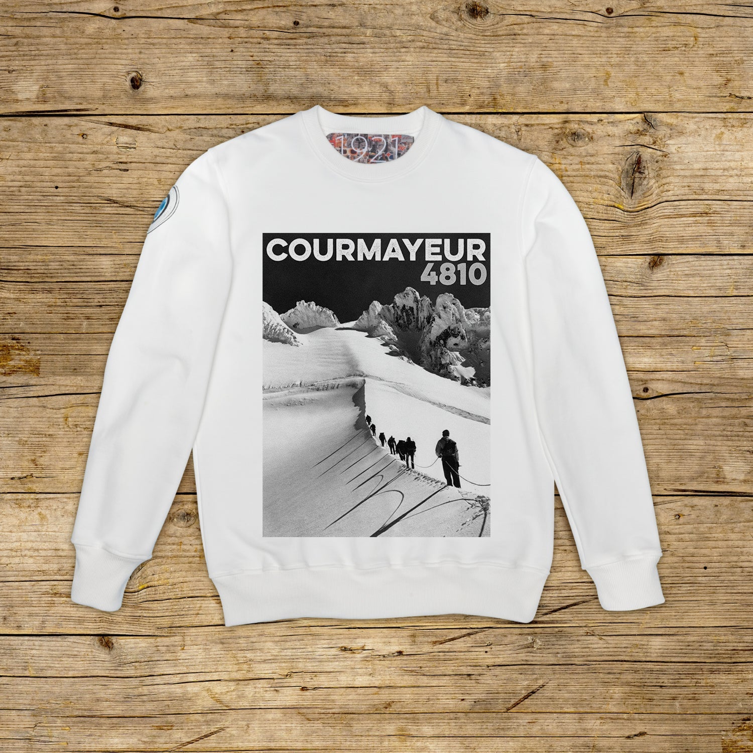 Collegegenser med rund hals og regular passform, i strukturert bomull med høy vekt, i den karakteristiske fargen OFF WHITE med trykk av høy kvalitet. Plagget har en PATCH i mikroinjeksjonsmateriale på høyre skulder med det ikoniske 1921‑logoet med hologram. Ribbestrikket hals, mansjetter og fald. Stor jacquard-etikett på innsiden av halsen. Made in Italy.