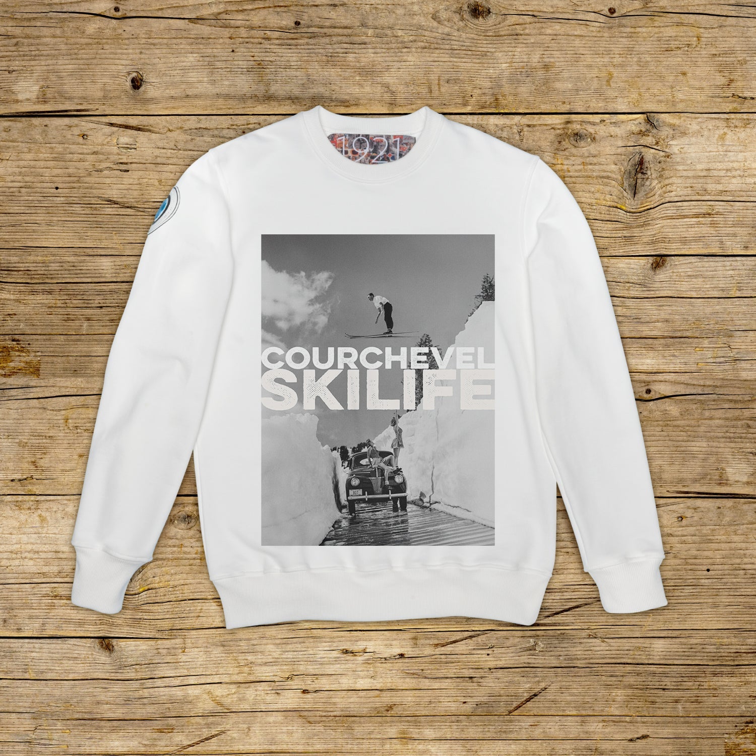 Collegegenser med rund hals og regular passform, i strukturert bomull med høy vekt, i den karakteristiske fargen OFF WHITE med trykk av høy kvalitet. Plagget har en PATCH i mikroinjeksjonsmateriale på høyre skulder med det ikoniske 1921‑logoet med hologram. Ribbestrikket hals, mansjetter og fald. Stor jacquard-etikett på innsiden av halsen. Made in Italy.