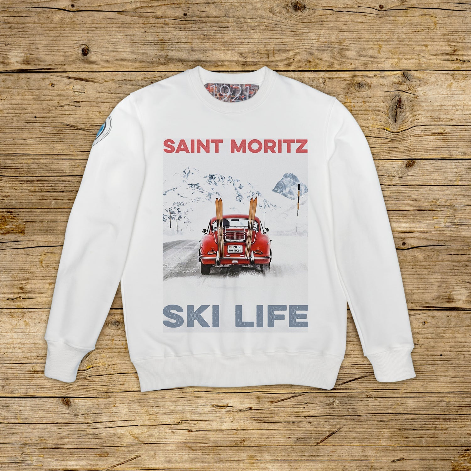 Collegegenser med rund hals og regular passform, i strukturert bomull med høy vekt, i den karakteristiske fargen OFF WHITE med trykk av høy kvalitet. Plagget har en PATCH i mikroinjeksjonsmateriale på høyre skulder med det ikoniske 1921‑logoet med hologram. Ribbestrikket hals, mansjetter og fald. Stor jacquard-etikett på innsiden av halsen. Made in Italy.