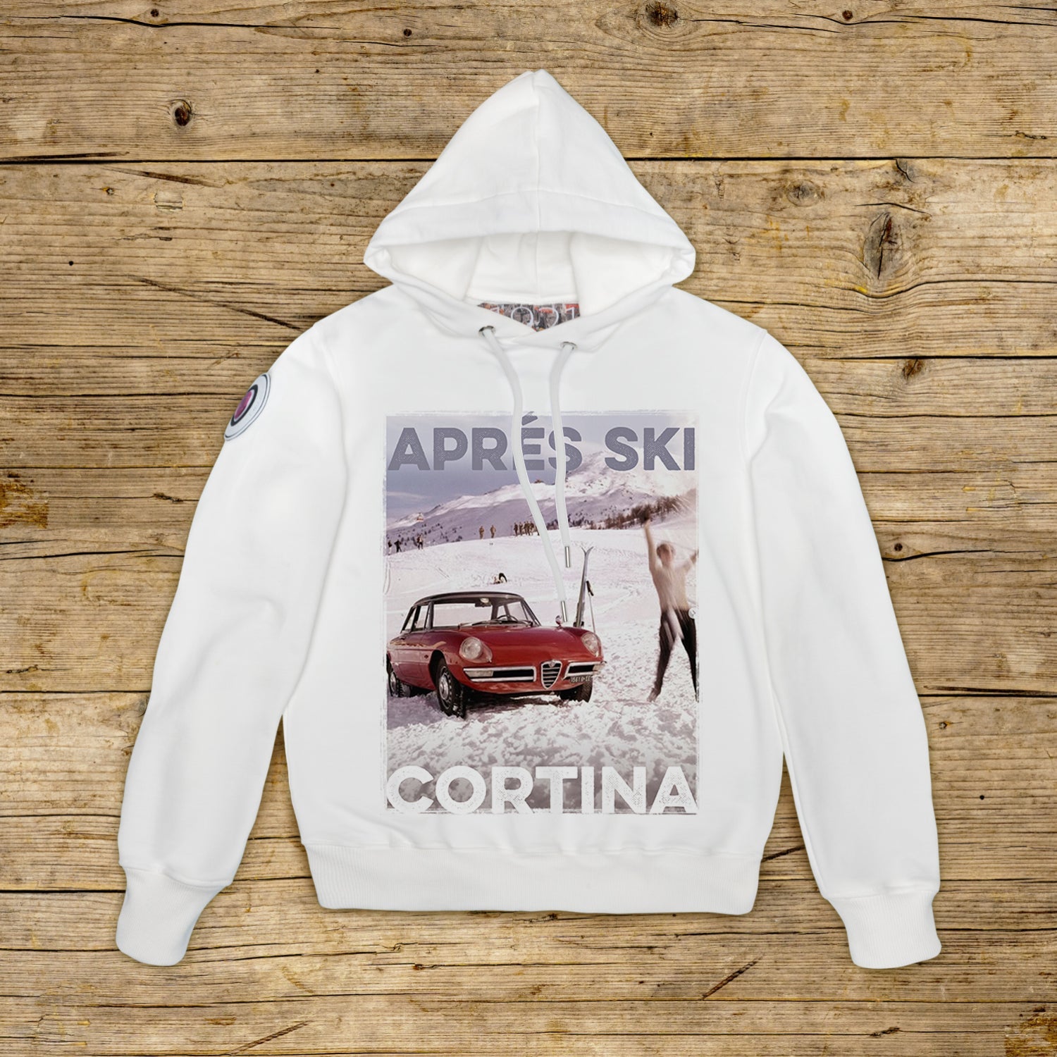 Hettegenser med dobbelt lag og regular passform, i strukturert bomull med høy vekt, i den karakteristiske fargen OFF WHITE med trykk av høy kvalitet. Plagget har en PATCH i mikroinjeksjonsmateriale på høyre skulder med det ikoniske 1921‑logoet med hologрам. Ribbestrikket hals, mansjetter og fald. Maljene til hettesnoren i kraftig stål og personlig 1921-snorkappe. Made in Italy.