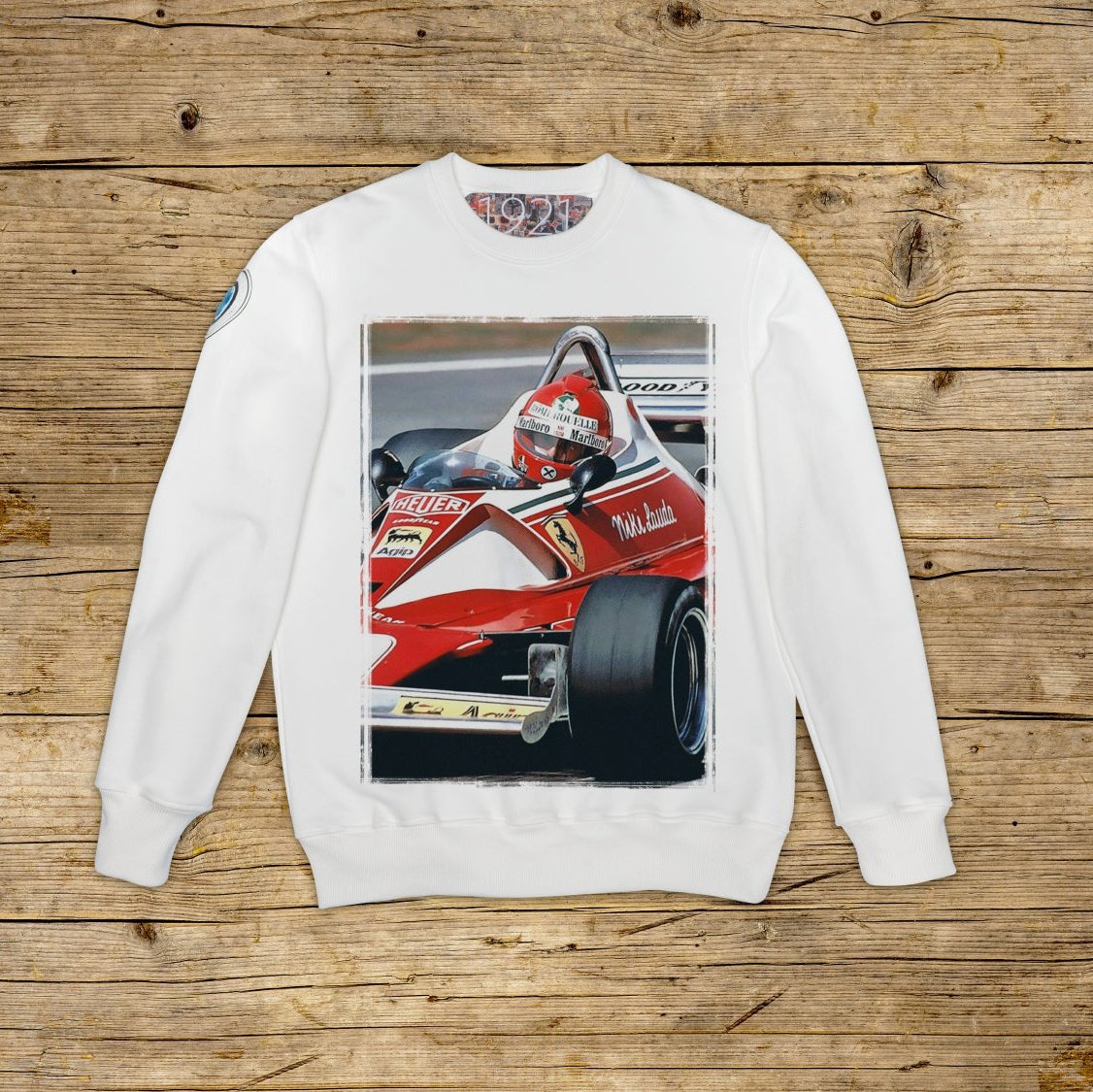Regular fit genser med rund hals laget av strukturert bomull med tung vekt, i den spesielle OFF WHITE-fargen med høykvalitetstrykk. Plagget er pyntet med en LAPPE i mikroinjeksjonsmateriale på høyre skulder med den ikoniske 1921-logoen med hologram. Modellen kompletteres med ribbestrikket krage, mansjetter og midje. En stor jacquardetikett er påført på innsiden av halsen. Strengt laget i Italia