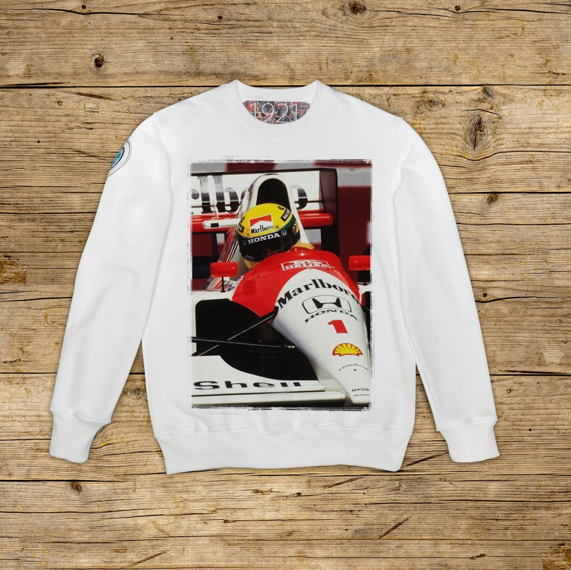 Regular fit genser med rund hals laget av strukturert bomull med tung vekt, i den spesielle OFF WHITE-fargen med høykvalitetstrykk. Plagget er pyntet med en LAPPE i mikroinjeksjonsmateriale på høyre skulder med den ikoniske 1921-logoen med hologram. Modellen kompletteres med ribbestrikket krage, mansjetter og midje. En stor jacquardetikett er påført på innsiden av halsen. Strengt laget i Italia