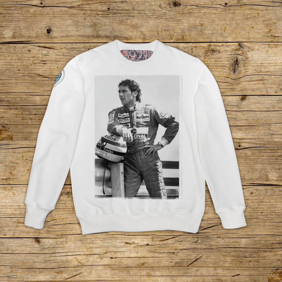 Regular fit genser med rund hals laget av strukturert bomull med tung vekt, i den spesielle OFF WHITE-fargen med høykvalitetstrykk. Plagget er pyntet med en LAPPE i mikroinjeksjonsmateriale på høyre skulder med den ikoniske 1921-logoen med hologram. Modellen kompletteres med ribbestrikket krage, mansjetter og midje. En stor jacquardetikett er påført på innsiden av halsen. Strengt laget i Italia