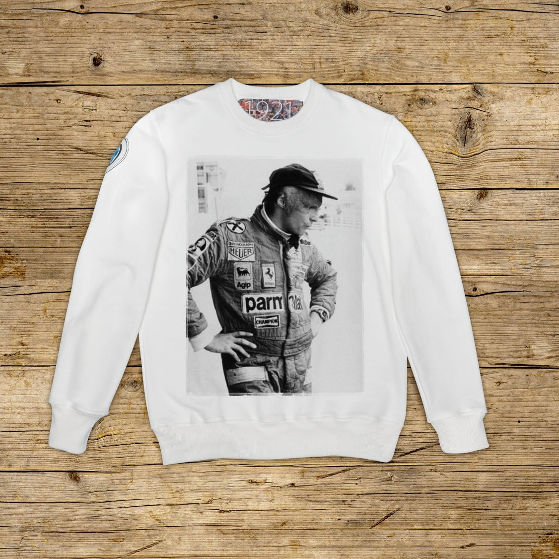 Regular fit genser med rund hals laget av strukturert bomull med tung vekt, i den spesielle OFF WHITE-fargen med høykvalitetstrykk. Plagget er pyntet med en LAPPE i mikroinjeksjonsmateriale på høyre skulder med den ikoniske 1921-logoen med hologram. Modellen kompletteres med ribbestrikket krage, mansjetter og midje. En stor jacquardetikett er påført på innsiden av halsen. Strengt laget i Italia