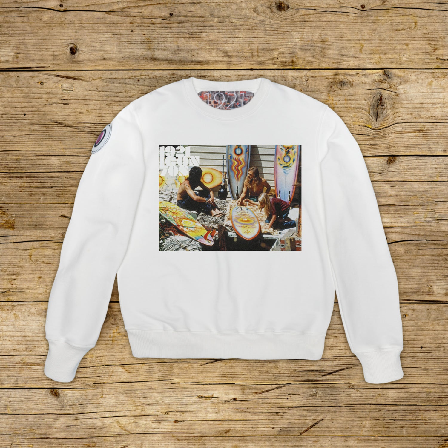Bluza o regularnym kroju, z okrągłym dekoltem, wykonana z bawełny strukturalnej o dużej gramaturze, w szczególnym kolorze OFF WHITE z wysokiej jakości nadrukiem. Ubranie jest ozdobione naszywką z materiału mikrowtryskowego na prawym ramieniu, ozdobioną kultowym logo 1921 z hologramem. Model uzupełnia prążkowany kołnierzyk, mankiety i talia. Po wewnętrznej stronie szyi naszyta duża żakardowa metka. Wyprodukowano wyłącznie we Włoszech.