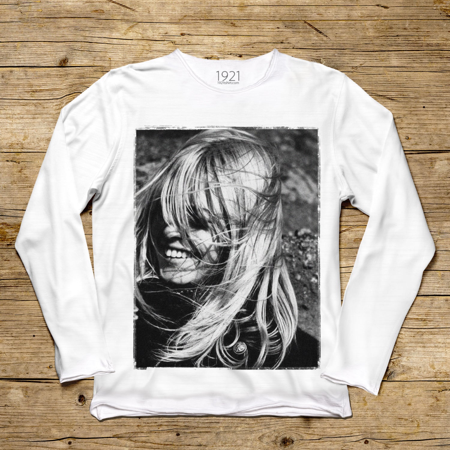 T-shirt o regularnym kroju z długim rękawem, wykonany z najwyższej jakości bawełny typu slub. Zaskakująco świeże, z wygodnym dekoltem i ozdobione efektownym nadrukiem. T-shirt jest ekskluzywny dzięki specjalnym przeszyciom przy szyi, rękawach i talii. Wyprodukowano wyłącznie we Włoszech.