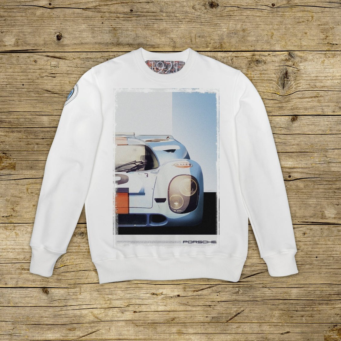 Bluza z okrągłym dekoltem o regularnym kroju, wykonana z bawełny strukturalnej o dużej gramaturze, w szczególnym kolorze OFF WHITE z wysokiej jakości nadrukiem. Ubranie jest ozdobione naszywką z materiału mikrowtryskowego na prawym ramieniu, ozdobioną kultowym logo 1921 z hologramem. Model uzupełnia prążkowany kołnierzyk, mankiety i talia. Po wewnętrznej stronie szyi naszyta duża żakardowa metka. Wyprodukowano wyłącznie we Włoszech