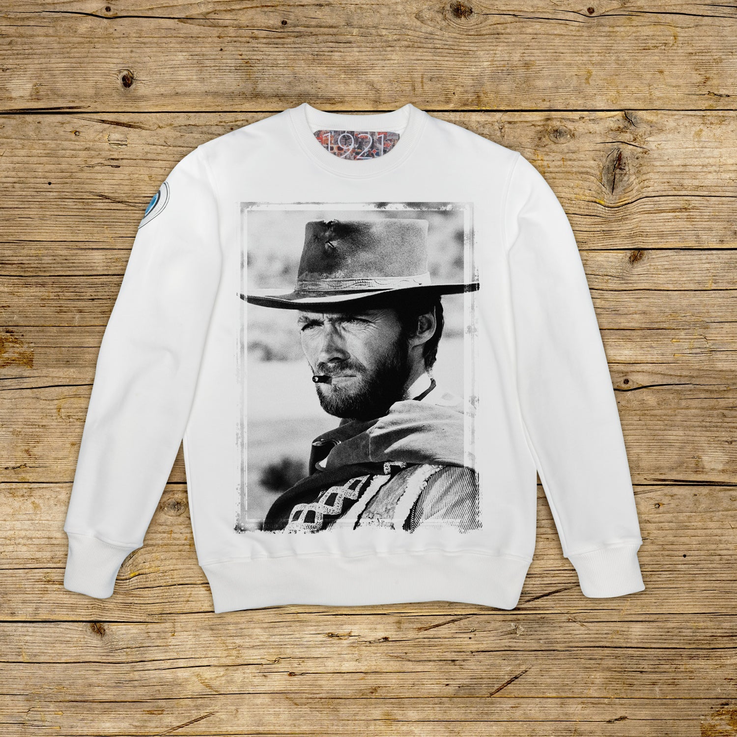Bluza o regularnym kroju, z okrągłym dekoltem, wykonana z bawełny strukturalnej o dużej gramaturze, w szczególnym kolorze OFF WHITE z wysokiej jakości nadrukiem. Ubranie jest ozdobione naszywką z materiału mikrowtryskowego na prawym ramieniu, ozdobioną kultowym logo 1921 z hologramem. Model uzupełnia prążkowany kołnierzyk, mankiety i talia. Po wewnętrznej stronie szyi naszyta duża żakardowa metka. Wyprodukowano wyłącznie we Włoszech.