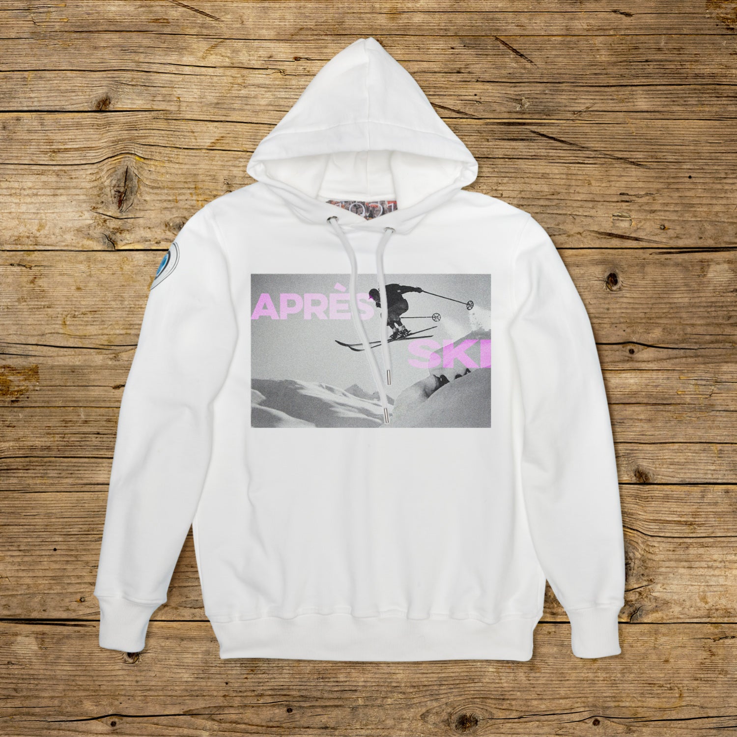 Bluza z podwójnym kapturem o regularnym kroju, wykonana z bawełny strukturalnej o dużej gramaturze, w szczególnym kolorze OFF WHITE z wysokiej jakości nadrukiem. Ubranie jest ozdobione naszywką z materiału mikrowtryskowego na prawym ramieniu, ozdobioną kultowym logo 1921 z hologramem. Model uzupełnia prążkowany kołnierzyk, mankiety i talia. Po wewnętrznej stronie szyi naszyta duża żakardowa metka. Oczka cięgien maski są wykonane z pogrubionej stali, podobnie jak końcówka spersonalizowanego sznurka z 1921 r. Wyprodukowano wyłącznie we Włoszech
