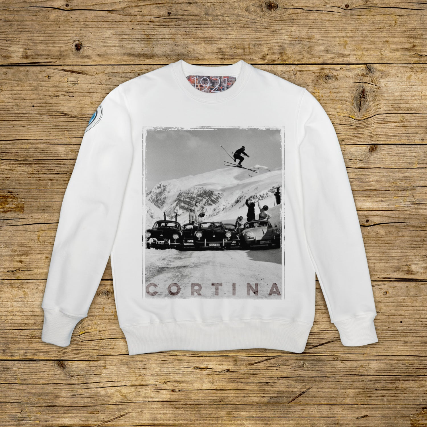 Bluza o regularnym kroju, z okrągłym dekoltem, wykonana z bawełny strukturalnej o dużej gramaturze, w szczególnym kolorze OFF WHITE z wysokiej jakości nadrukiem. Ubranie jest ozdobione naszywką z materiału mikrowtryskowego na prawym ramieniu, ozdobioną kultowym logo 1921 z hologramem. Model uzupełnia prążkowany kołnierzyk, mankiety i talia. Po wewnętrznej stronie szyi naszyta duża żakardowa metka. Wyprodukowano wyłącznie we Włoszech.