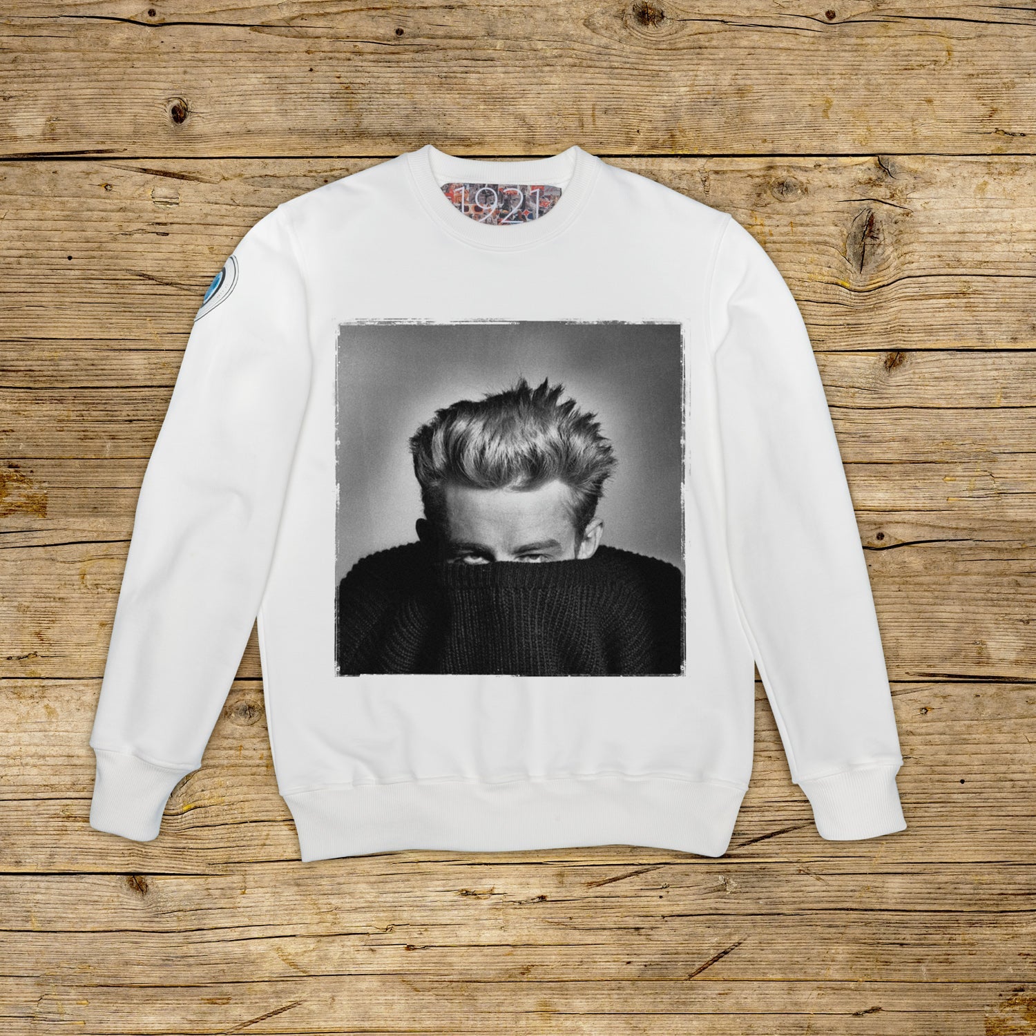 Bluza o regularnym kroju, z okrągłym dekoltem, wykonana z bawełny strukturalnej o dużej gramaturze, w szczególnym kolorze OFF WHITE z wysokiej jakości nadrukiem. Ubranie jest ozdobione naszywką z materiału mikrowtryskowego na prawym ramieniu, ozdobioną kultowym logo 1921 z hologramem. Model uzupełnia prążkowany kołnierzyk, mankiety i talia. Po wewnętrznej stronie szyi naszyta duża żakardowa metka. Wyprodukowano wyłącznie we Włoszech.
