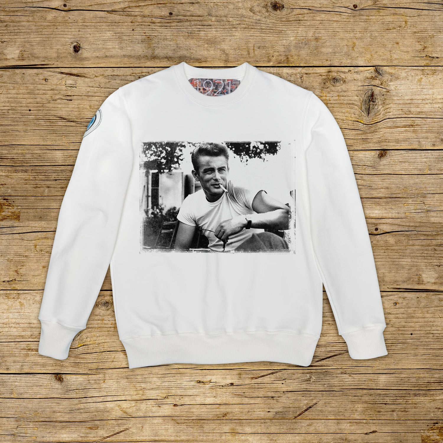 Bluza o regularnym kroju, z okrągłym dekoltem, wykonana z bawełny strukturalnej o dużej gramaturze, w szczególnym kolorze OFF WHITE z wysokiej jakości nadrukiem. Ubranie jest ozdobione naszywką z materiału mikrowtryskowego na prawym ramieniu, ozdobioną kultowym logo 1921 z hologramem. Model uzupełnia prążkowany kołnierzyk, mankiety i talia. Po wewnętrznej stronie szyi naszyta duża żakardowa metka. Wyprodukowano wyłącznie we Włoszech.