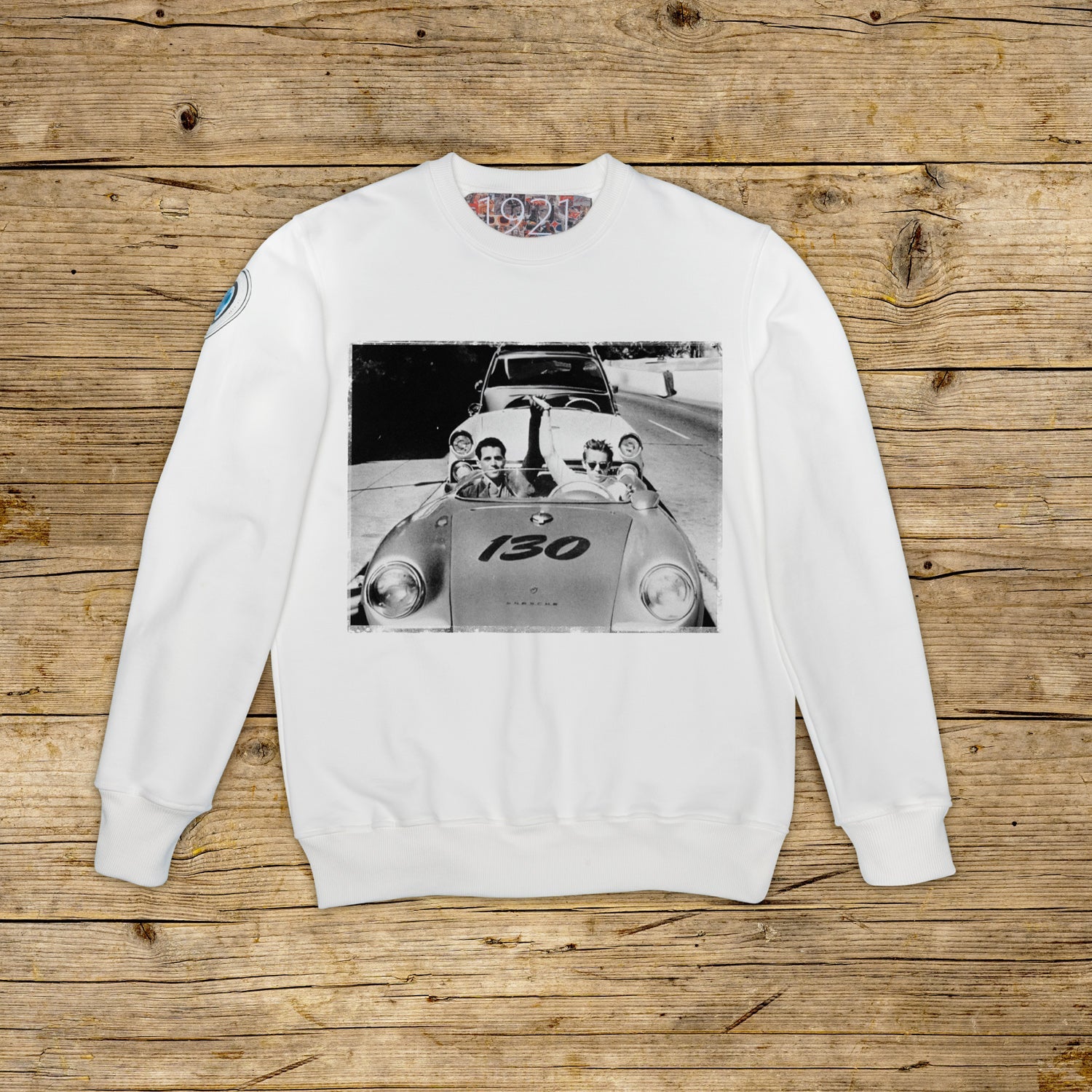 Bluza o regularnym kroju, z okrągłym dekoltem, wykonana z bawełny strukturalnej o dużej gramaturze, w szczególnym kolorze OFF WHITE z wysokiej jakości nadrukiem. Ubranie jest ozdobione naszywką z materiału mikrowtryskowego na prawym ramieniu, ozdobioną kultowym logo 1921 z hologramem. Model uzupełnia prążkowany kołnierzyk, mankiety i talia. Po wewnętrznej stronie szyi naszyta duża żakardowa metka. Wyprodukowano wyłącznie we Włoszech.