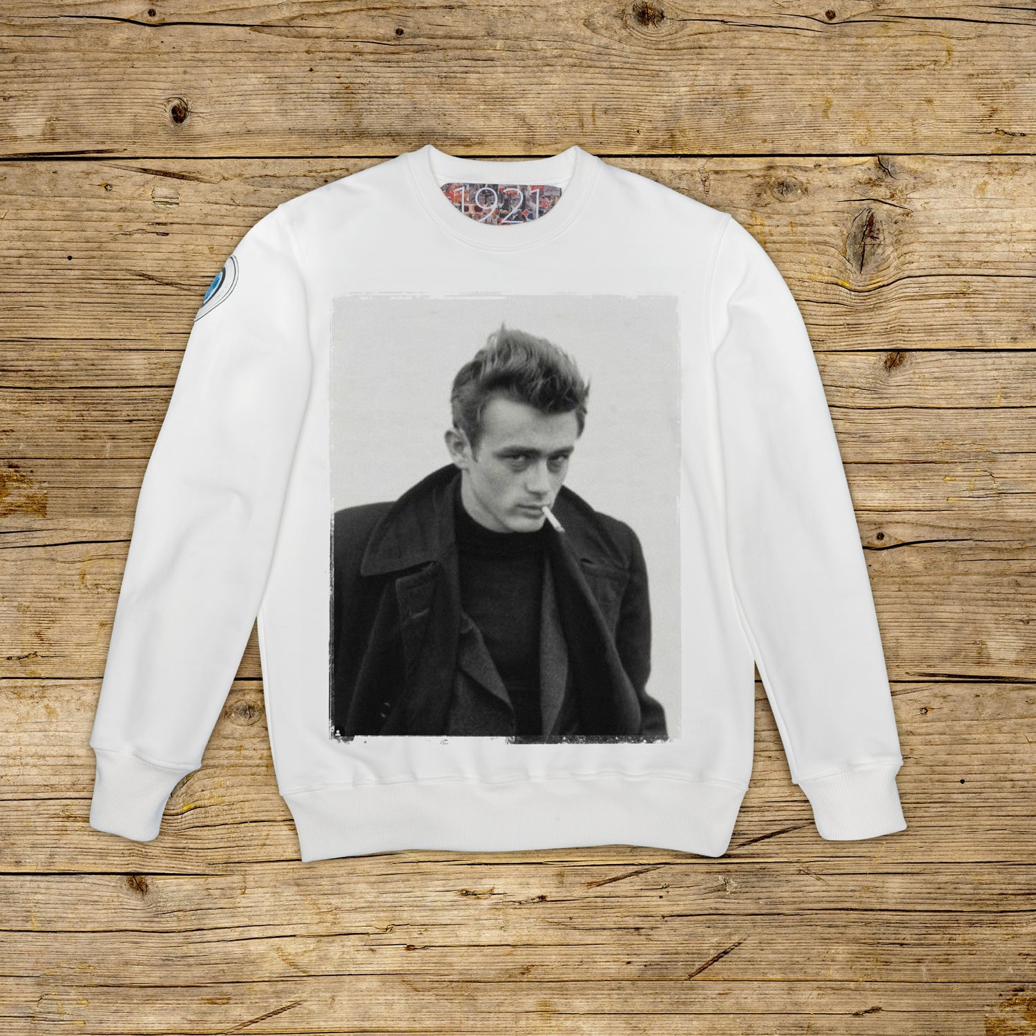 Bluza o regularnym kroju, z okrągłym dekoltem, wykonana z bawełny strukturalnej o dużej gramaturze, w szczególnym kolorze OFF WHITE z wysokiej jakości nadrukiem. Ubranie jest ozdobione naszywką z materiału mikrowtryskowego na prawym ramieniu, ozdobioną kultowym logo 1921 z hologramem. Model uzupełnia prążkowany kołnierzyk, mankiety i talia. Po wewnętrznej stronie szyi naszyta duża żakardowa metka. Wyprodukowano wyłącznie we Włoszech.