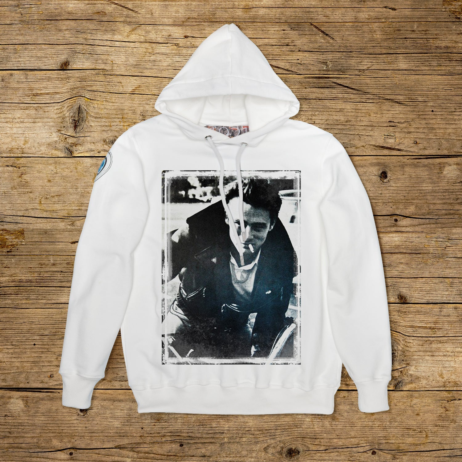 Bluza z podwójnym kapturem o regularnym kroju, wykonana z bawełny strukturalnej o dużej gramaturze, w szczególnym kolorze OFF WHITE z wysokiej jakości nadrukiem. Ubranie jest ozdobione naszywką z materiału mikrowtryskowego na prawym ramieniu, ozdobioną kultowym logo 1921 z hologramem. Model uzupełnia prążkowany kołnierzyk, mankiety i talia. Po wewnętrznej stronie szyi naszyta duża żakardowa metka. Oczka cięgien maski są wykonane z pogrubionej stali, podobnie jak końcówka spersonalizowanego sznurka z 1921 r., wyprodukowanego wyłącznie we Włoszech.