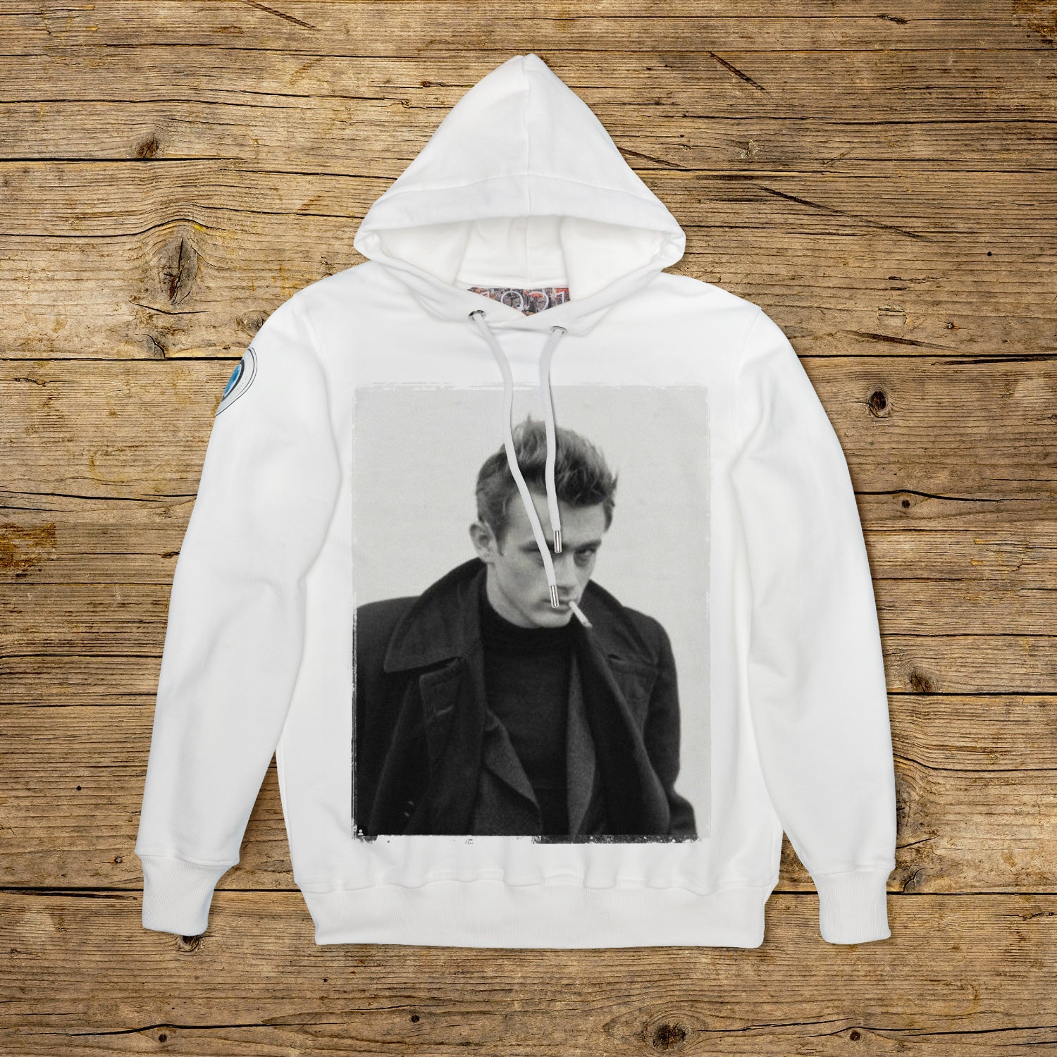 Bluza z podwójnym kapturem o regularnym kroju, wykonana z bawełny strukturalnej o dużej gramaturze, w szczególnym kolorze OFF WHITE z wysokiej jakości nadrukiem. Ubranie jest ozdobione naszywką z materiału mikrowtryskowego na prawym ramieniu, ozdobioną kultowym logo 1921 z hologramem. Model uzupełnia prążkowany kołnierzyk, mankiety i talia. Po wewnętrznej stronie szyi naszyta duża żakardowa metka. Oczka cięgien maski są wykonane z pogrubionej stali, podobnie jak końcówka spersonalizowanego sznurka z 1921 r., wyprodukowanego wyłącznie we Włoszech.
