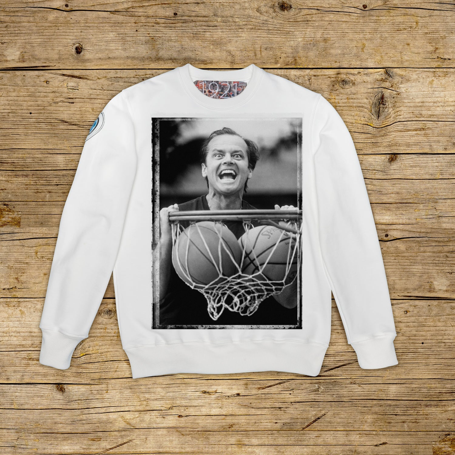 Bluza o regularnym kroju, z okrągłym dekoltem, wykonana z bawełny strukturalnej o dużej gramaturze, w szczególnym kolorze OFF WHITE z wysokiej jakości nadrukiem. Ubranie jest ozdobione naszywką z materiału mikrowtryskowego na prawym ramieniu, ozdobioną kultowym logo 1921 z hologramem. Model uzupełnia prążkowany kołnierzyk, mankiety i talia. Po wewnętrznej stronie szyi naszyta duża żakardowa metka. Wyprodukowano wyłącznie we Włoszech.