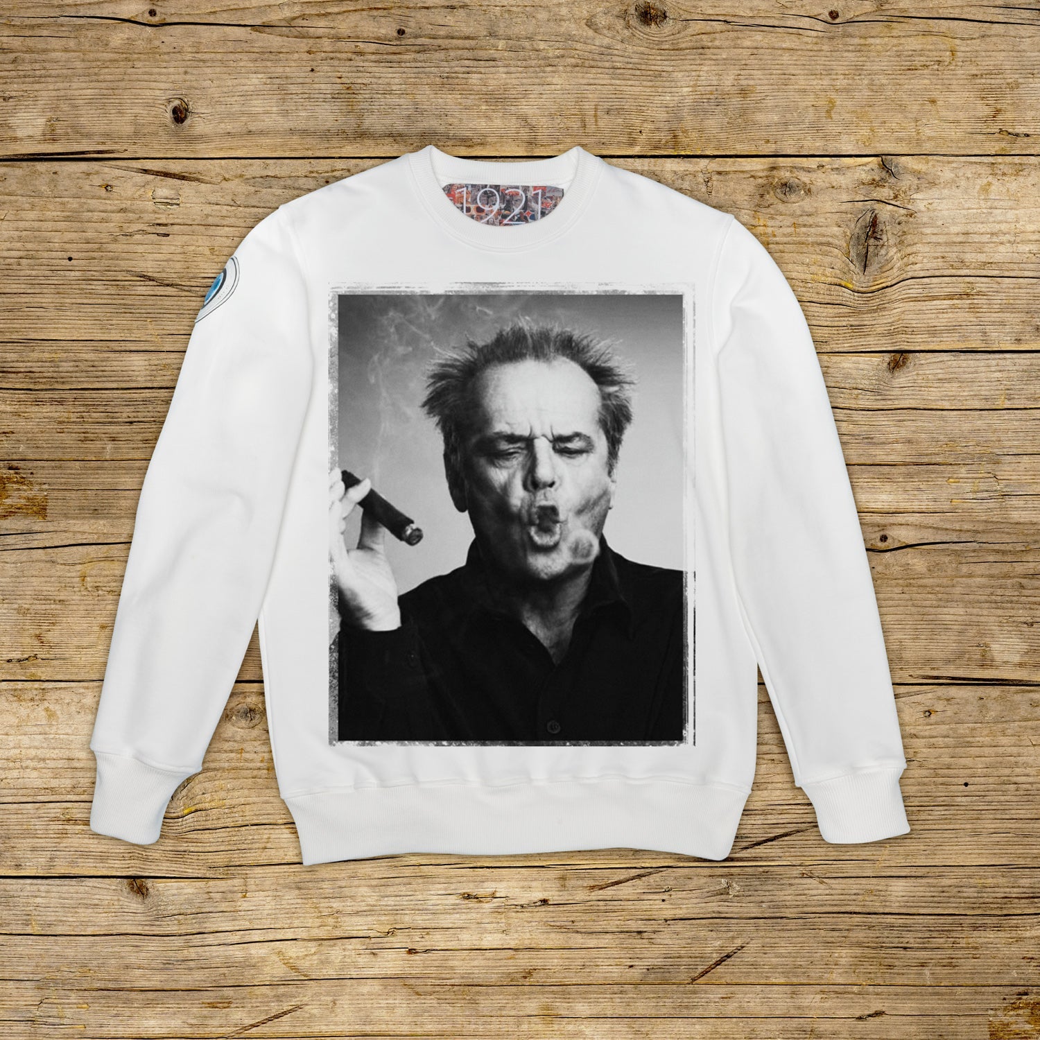 Bluza o regularnym kroju, z okrągłym dekoltem, wykonana z bawełny strukturalnej o dużej gramaturze, w szczególnym kolorze OFF WHITE z wysokiej jakości nadrukiem. Ubranie jest ozdobione naszywką z materiału mikrowtryskowego na prawym ramieniu, ozdobioną kultowym logo 1921 z hologramem. Model uzupełnia prążkowany kołnierzyk, mankiety i talia. Po wewnętrznej stronie szyi naszyta duża żakardowa metka. Wyprodukowano wyłącznie we Włoszech.