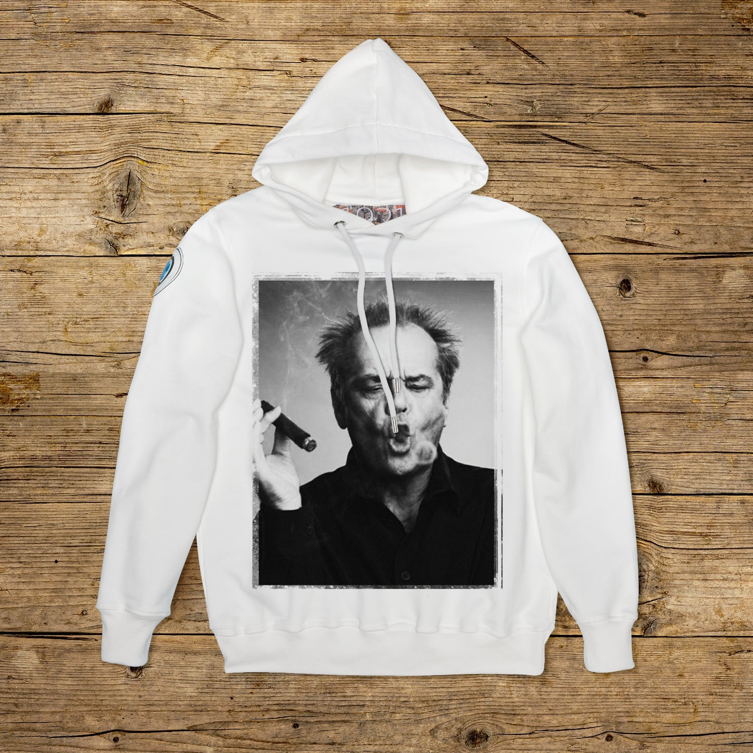 Bluza z podwójnym kapturem o regularnym kroju, wykonana z bawełny strukturalnej o dużej gramaturze, w szczególnym kolorze OFF WHITE z wysokiej jakości nadrukiem. Ubranie jest ozdobione naszywką z materiału mikrowtryskowego na prawym ramieniu, ozdobioną kultowym logo 1921 z hologramem. Model uzupełnia prążkowany kołnierzyk, mankiety i talia. Po wewnętrznej stronie szyi naszyta duża żakardowa metka. Oczka cięgien maski są wykonane z pogrubionej stali, podobnie jak końcówka spersonalizowanego sznurka z 1921 r., wyprodukowanego wyłącznie we Włoszech.